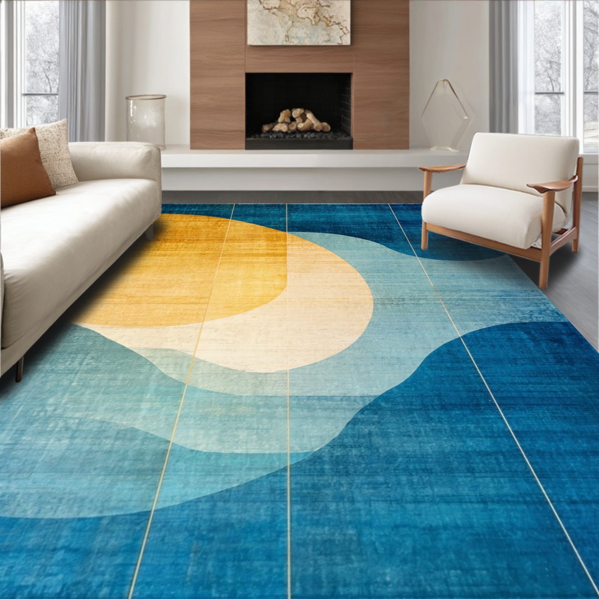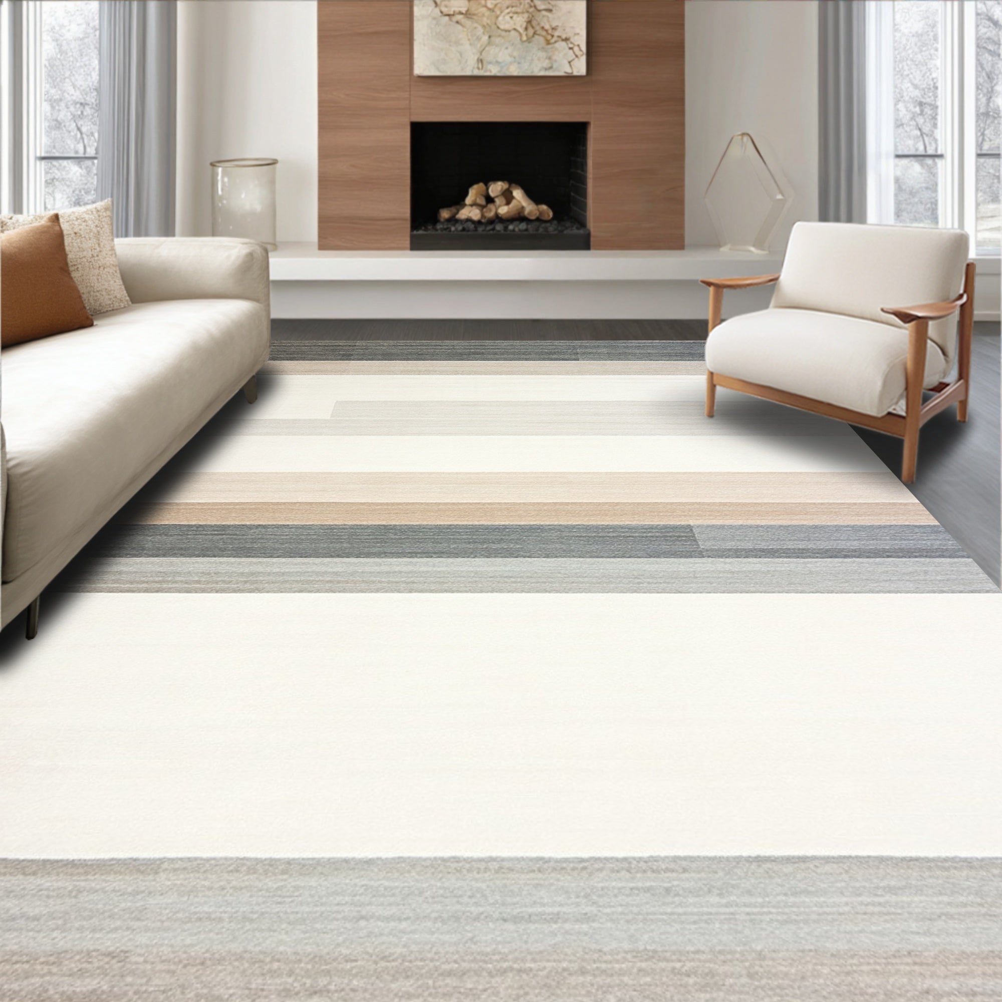 Abstract Horizon Beige Area Modern Artistic Floor Covering(Beige)