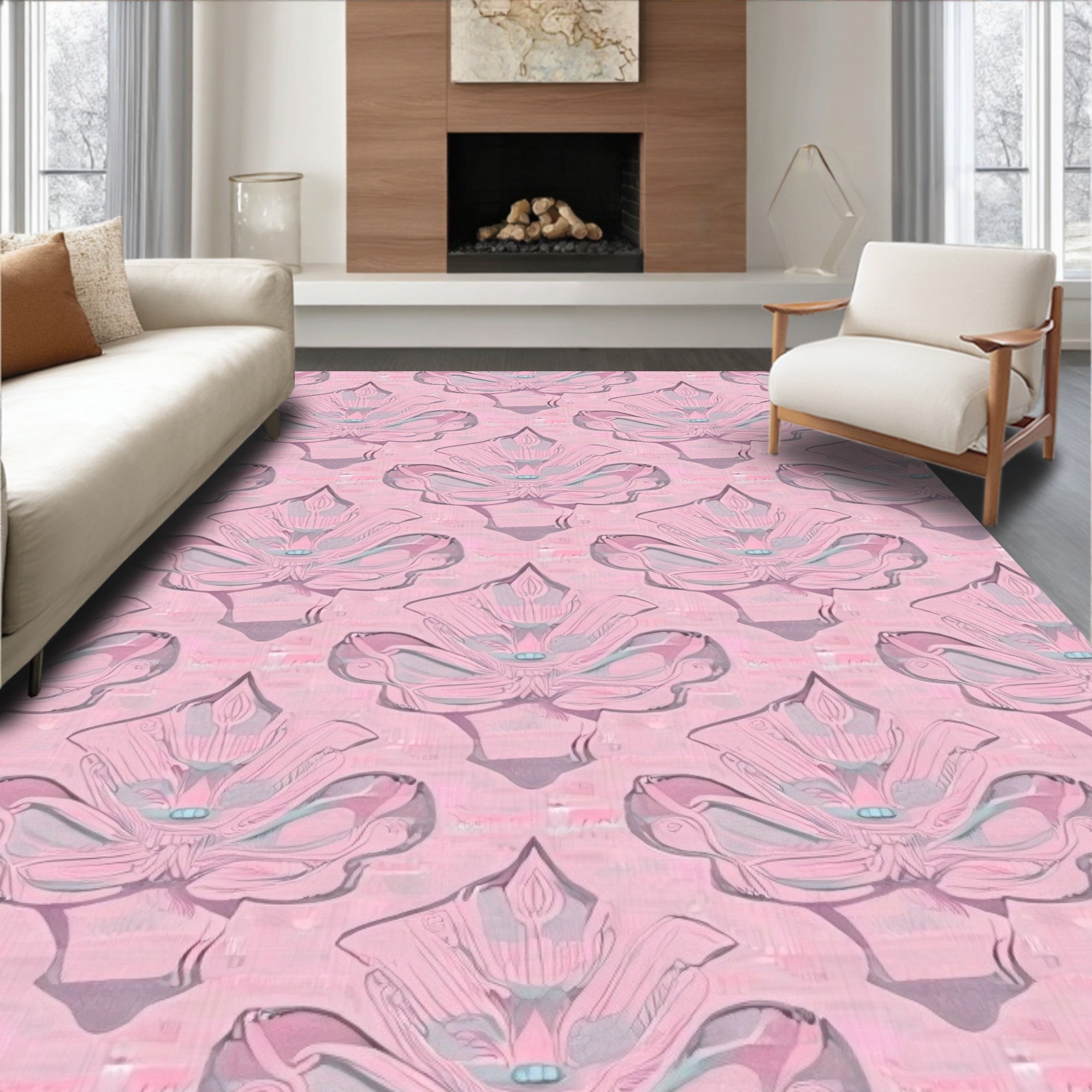 Abstract Cloudburst Interlocking with Ornamental Arabesque Details(Pink)