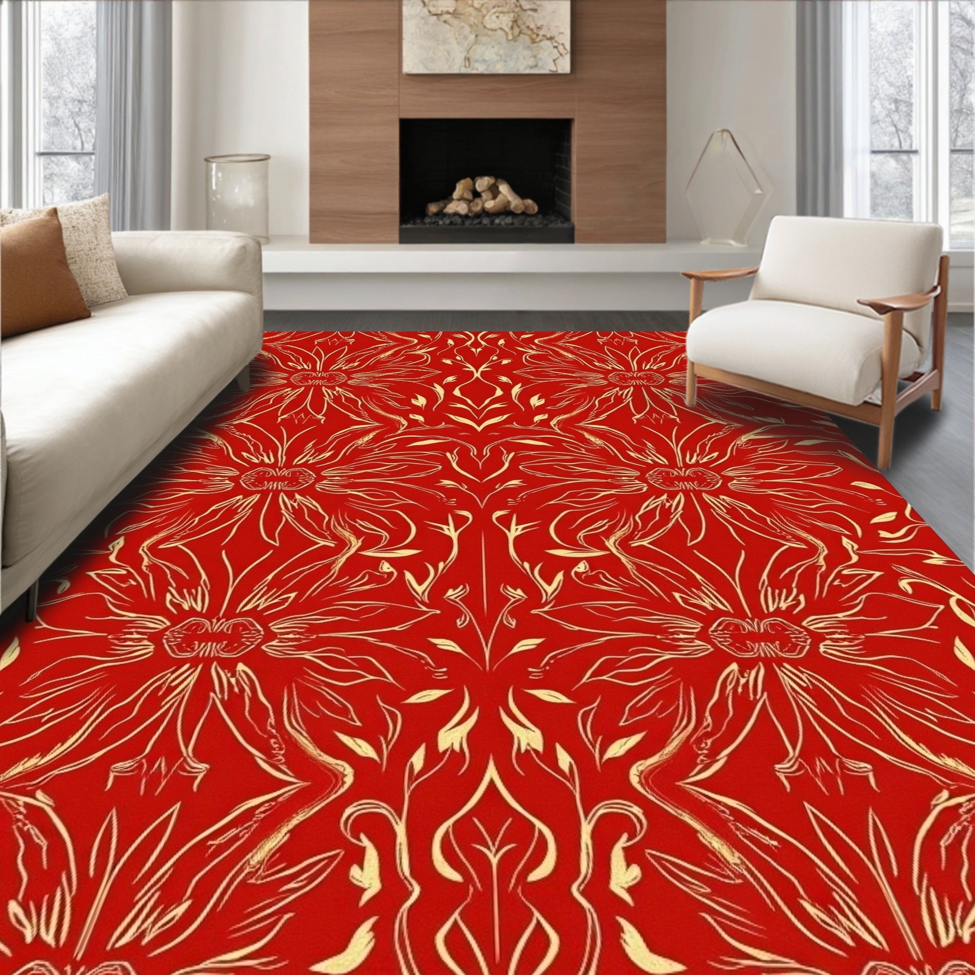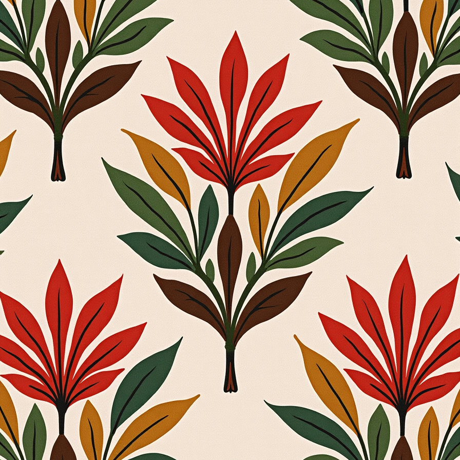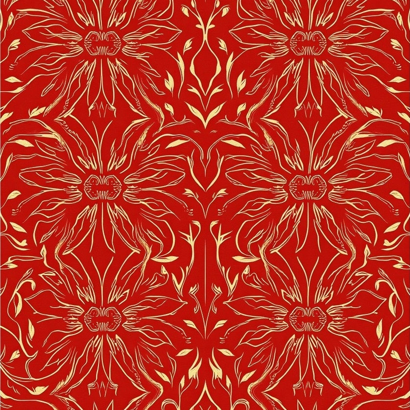 Autumnal Vines Interlocking with Rustic Floral Accents(Red)