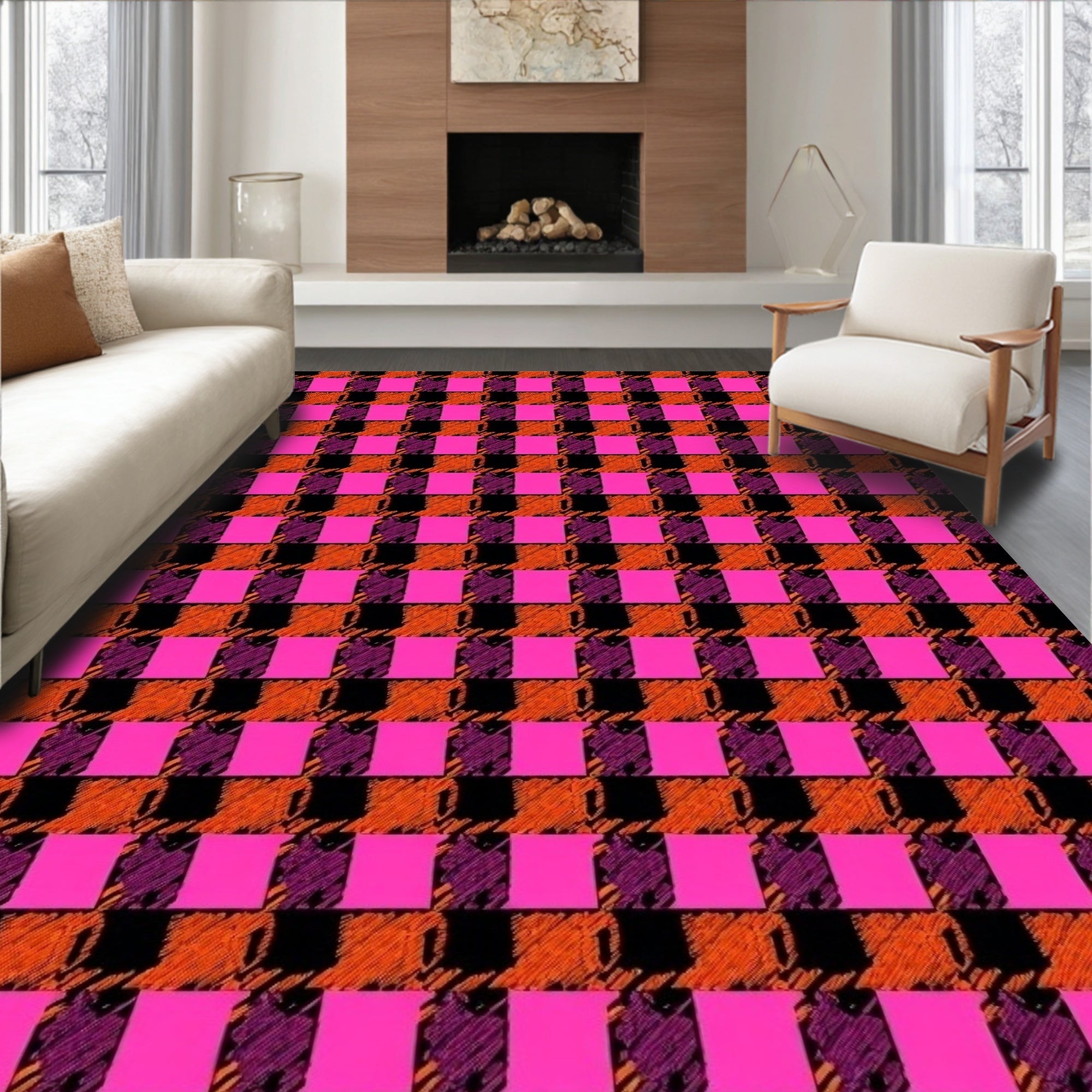 Autumnal Grid with Layered Crosshatch and Vibrant Rust Highlights(Pink)