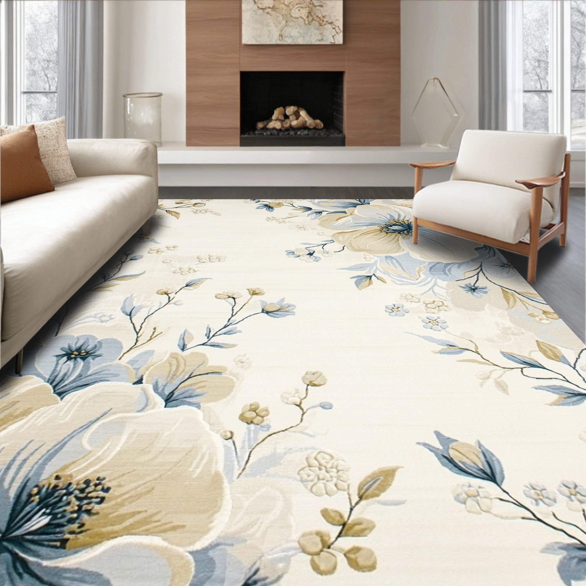 Azure Echoes Area Beige Accents Elegant Floor Art(Beige)