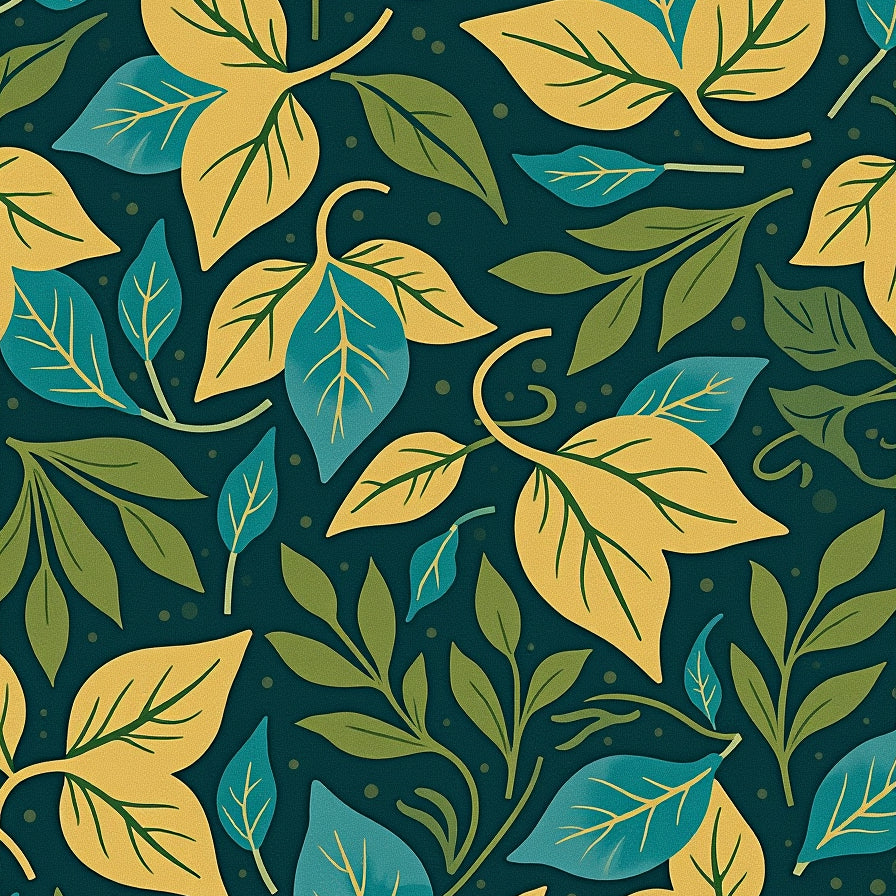 Abstract Jungle Foliage Motif with Interlocking Leaf Shapes(Yellow)