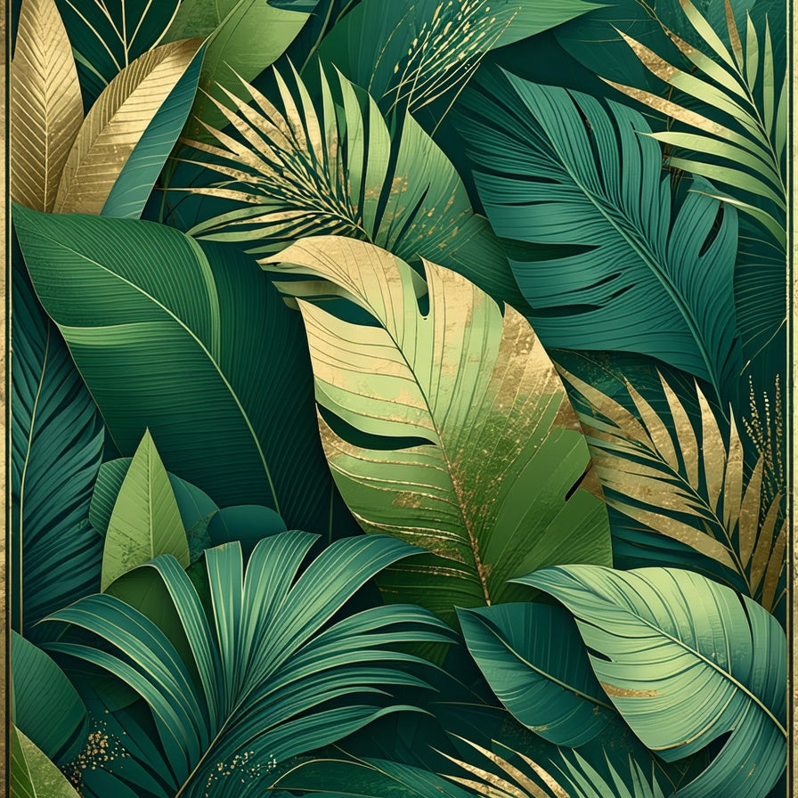 Abstract Leopard Deep Green and Gold Accents(Beige)