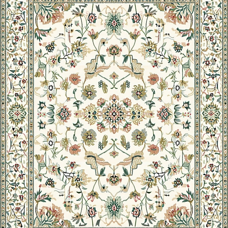 Beige and Sage Green Area with Classic Boho Floral Layout(Beige)
