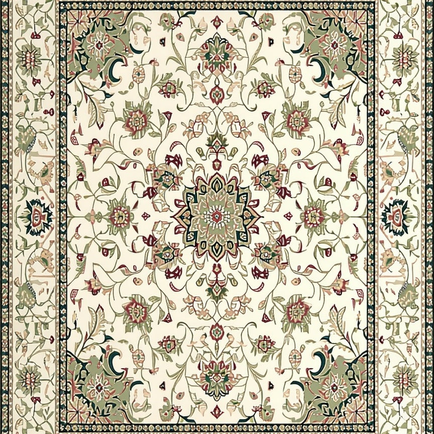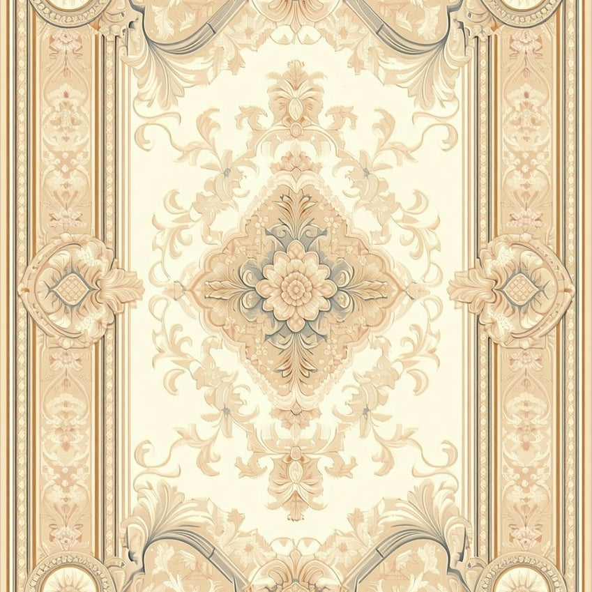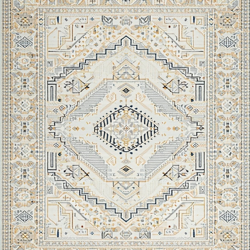 Beige and Cream Ornate Medallion with Refined Scroll Accents Flourishes(Beige)
