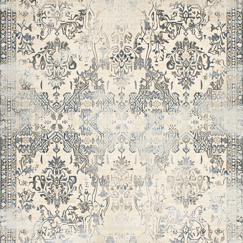 Beige and Grey with Classic Worn Oriental Motifs Subtle Distressing(Beige)