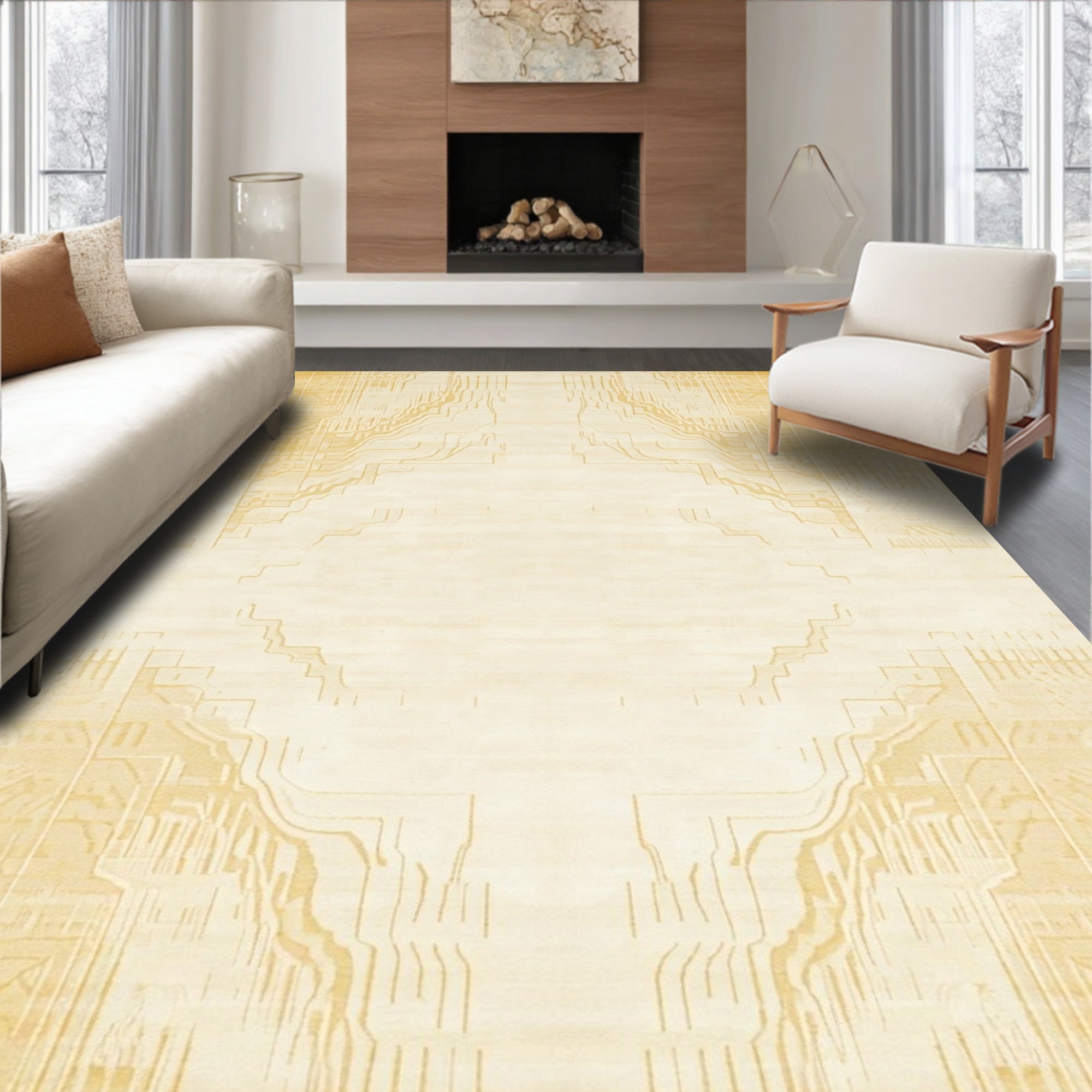 Beige and Ivory with Layered Abstract Geometry Subtle Gradient Detailing(Beige)