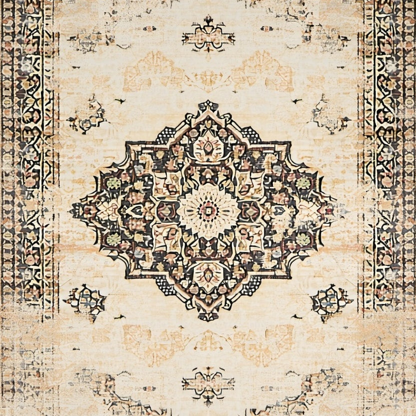 Beige Antique Floral Low Pile Indoor Area(Beige)