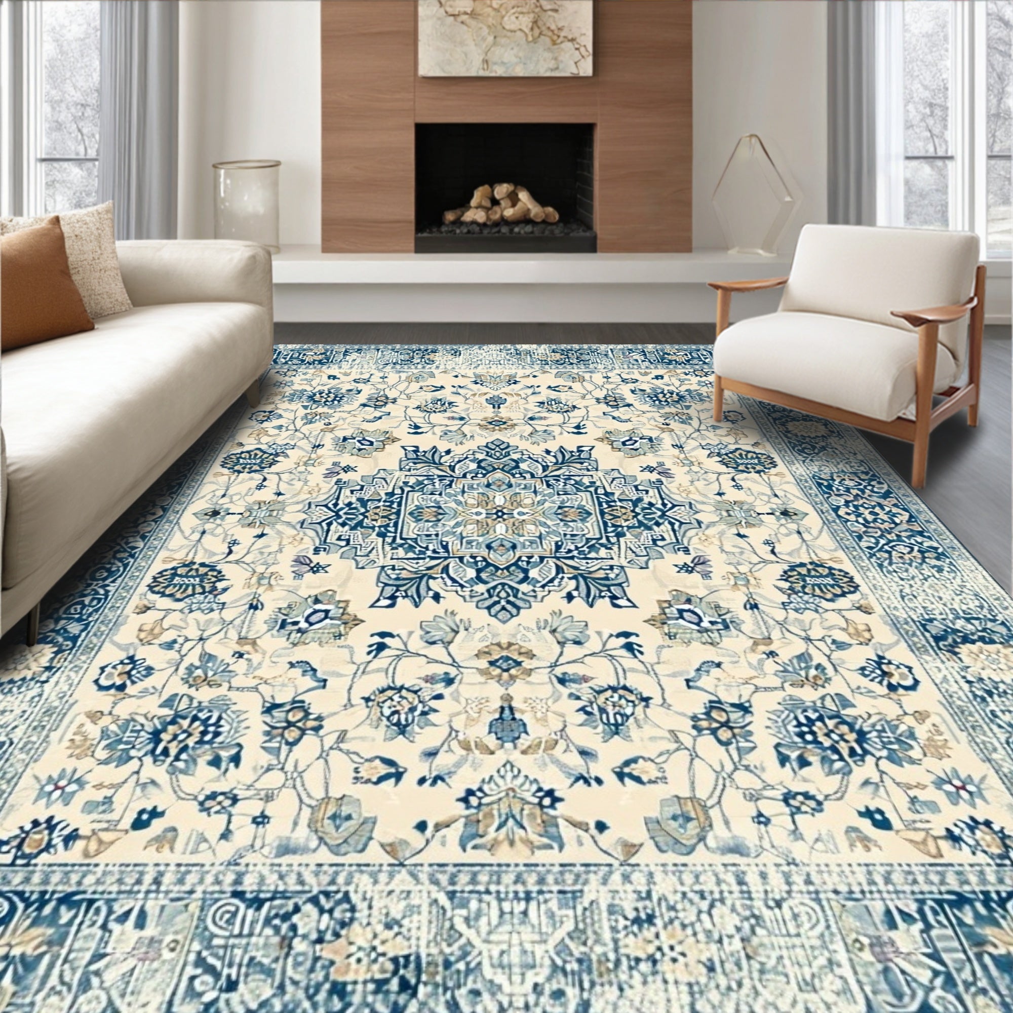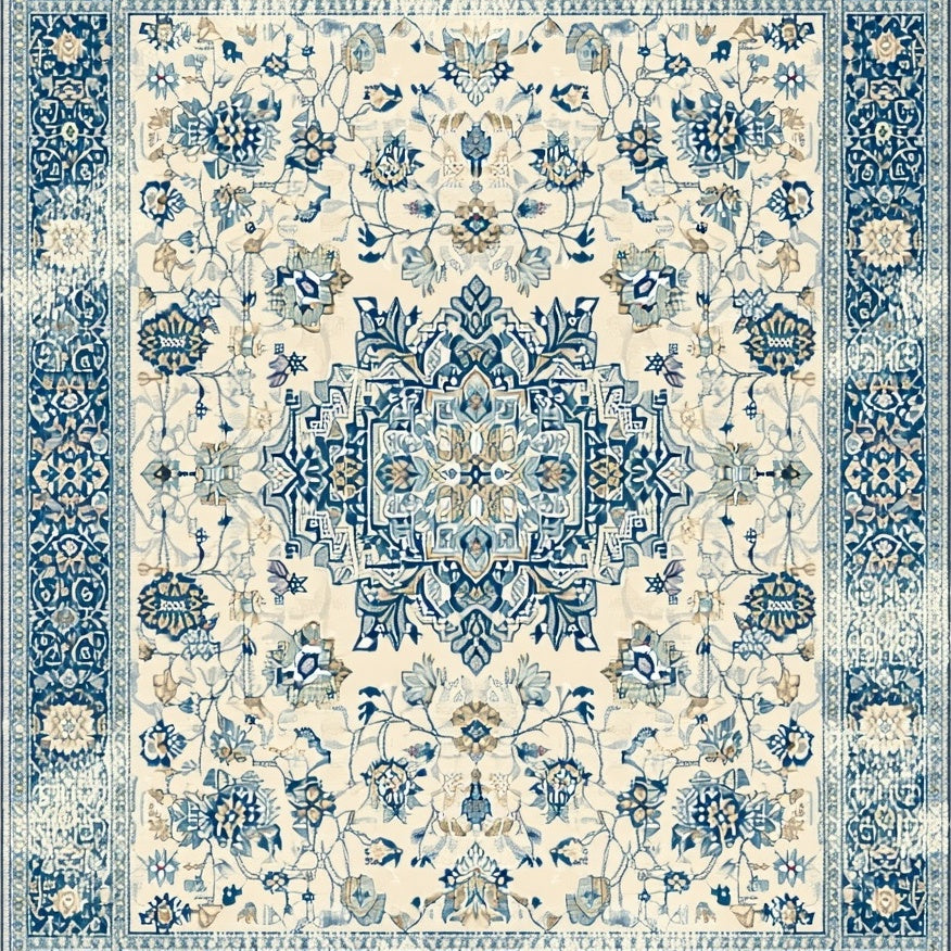 Beige Area with Vintage Inspired Oriental Medallion Cotton Design Easy Care(Ivory)