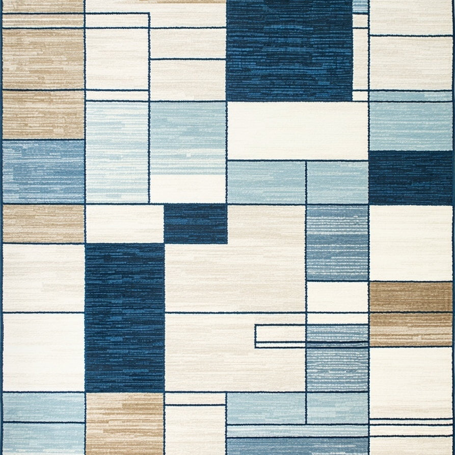 Beige Blue Geo Patchwork Area Modern Floor Art for Home(Beige)