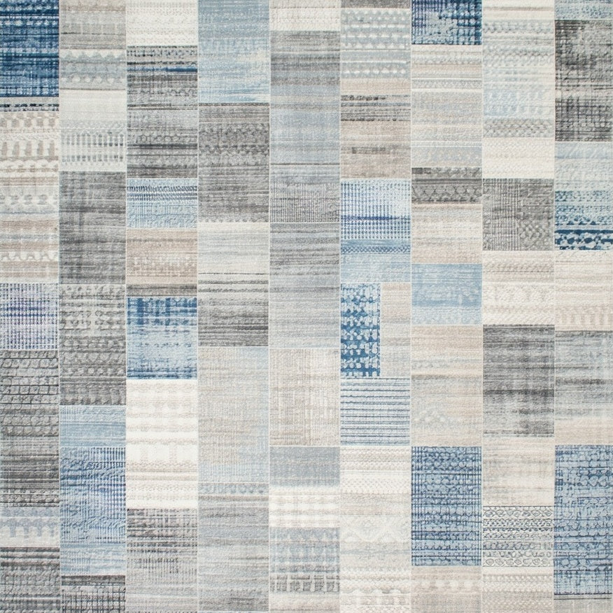 Beige Blue Geometric Patchwork Area Unique Floor Decor(Gray)