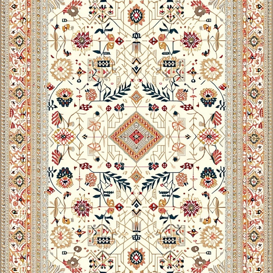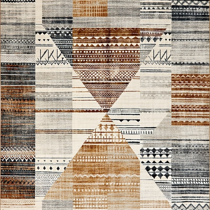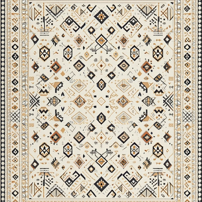 Beige Boho Trellis Featuring Non Shedding Layered Diamond Motifs(Beige)