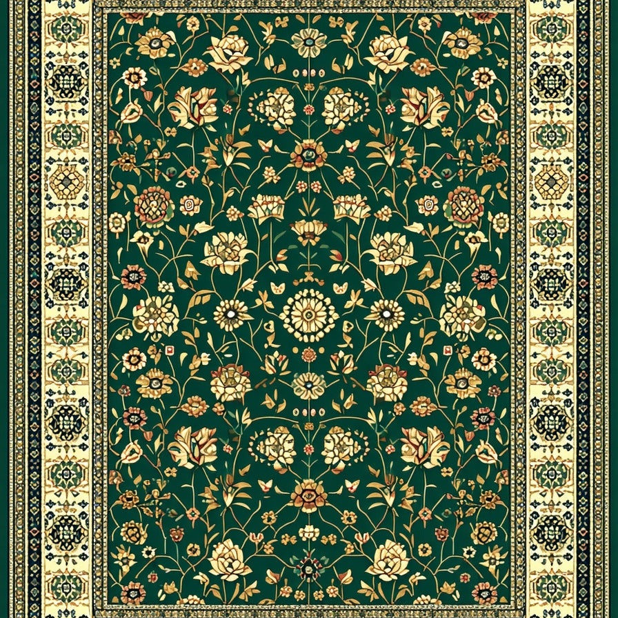 Beige Boho with Floral Motifs(Green)