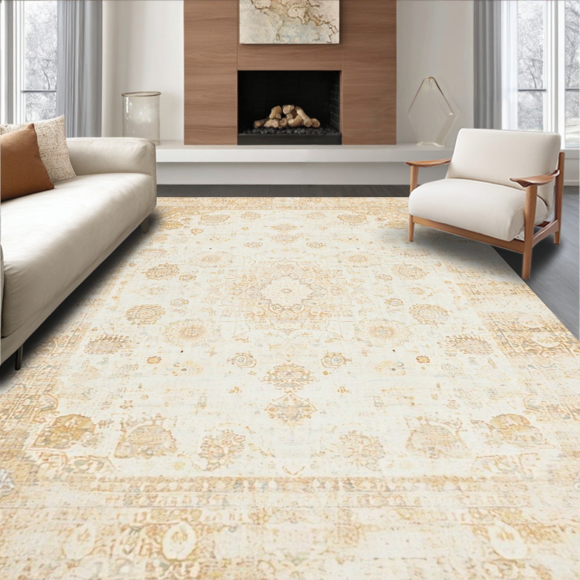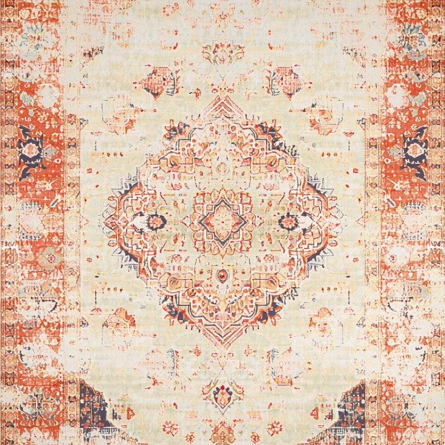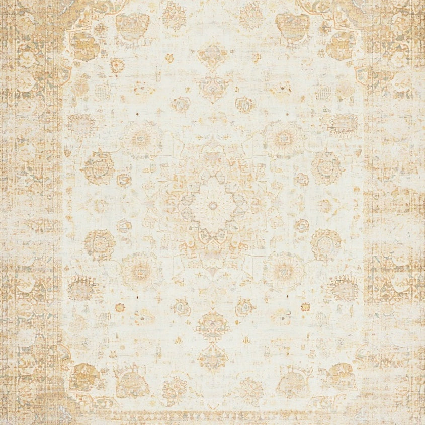 Beige Brown Vintage Medallion Distressed Retro Floor(Beige)