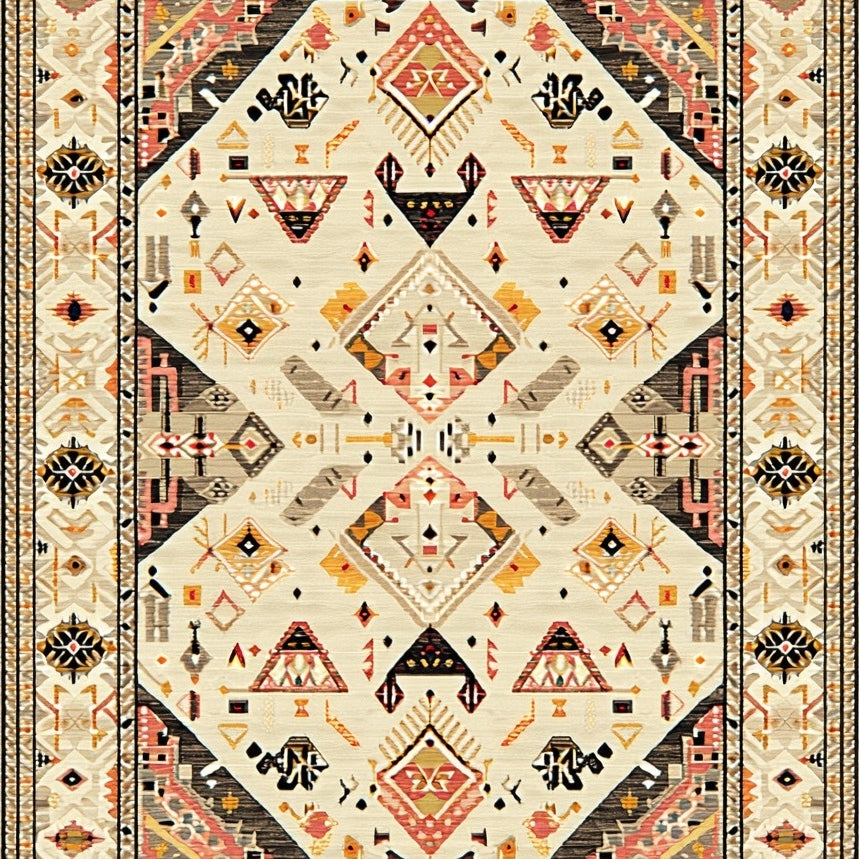 Beige Circular Area with Abstract Boho Wave and Diamond Elements(Beige)