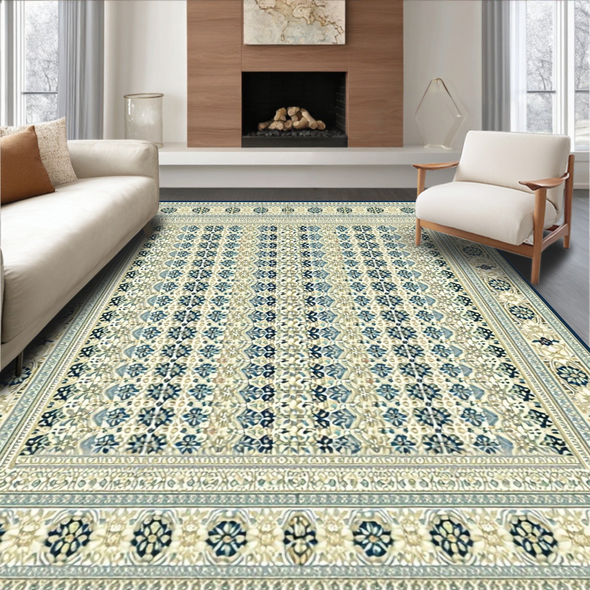 Beige Butterfly Floral Non Slip Area(Beige)