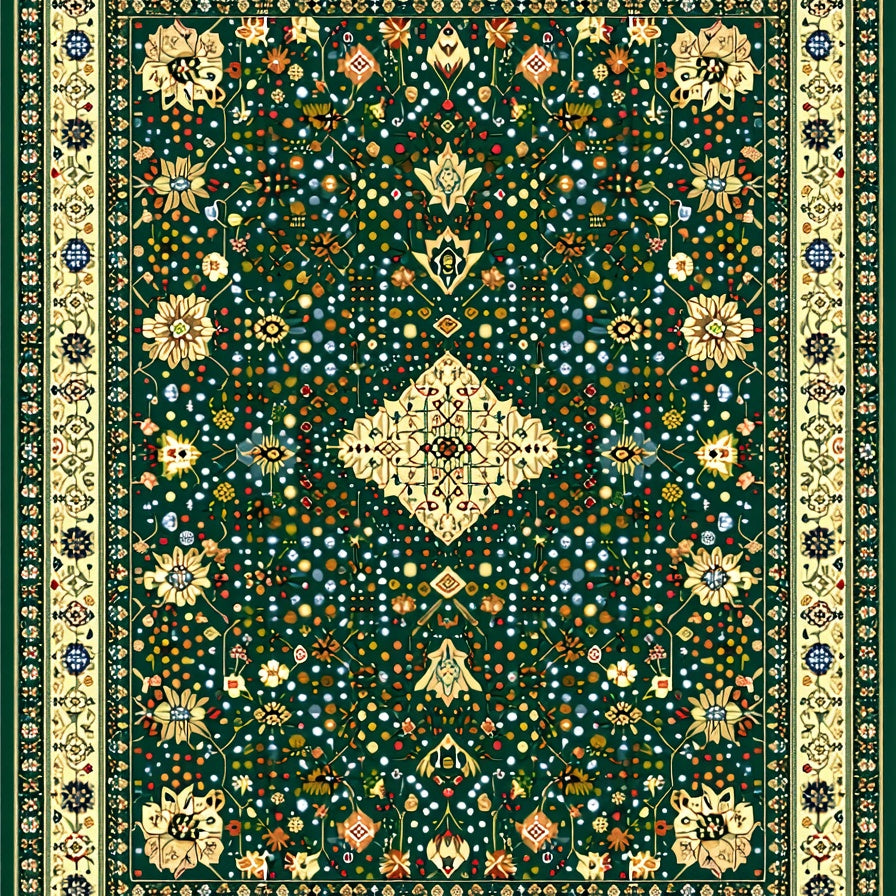 Beige Deep Green Interlaced Diamond Motifs(Green)
