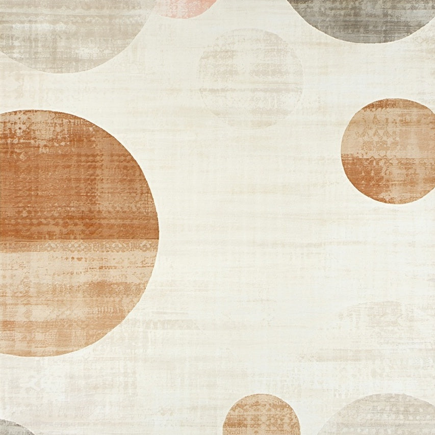 Beige Cream Circle Distressed Print Round Accent Area(Beige)