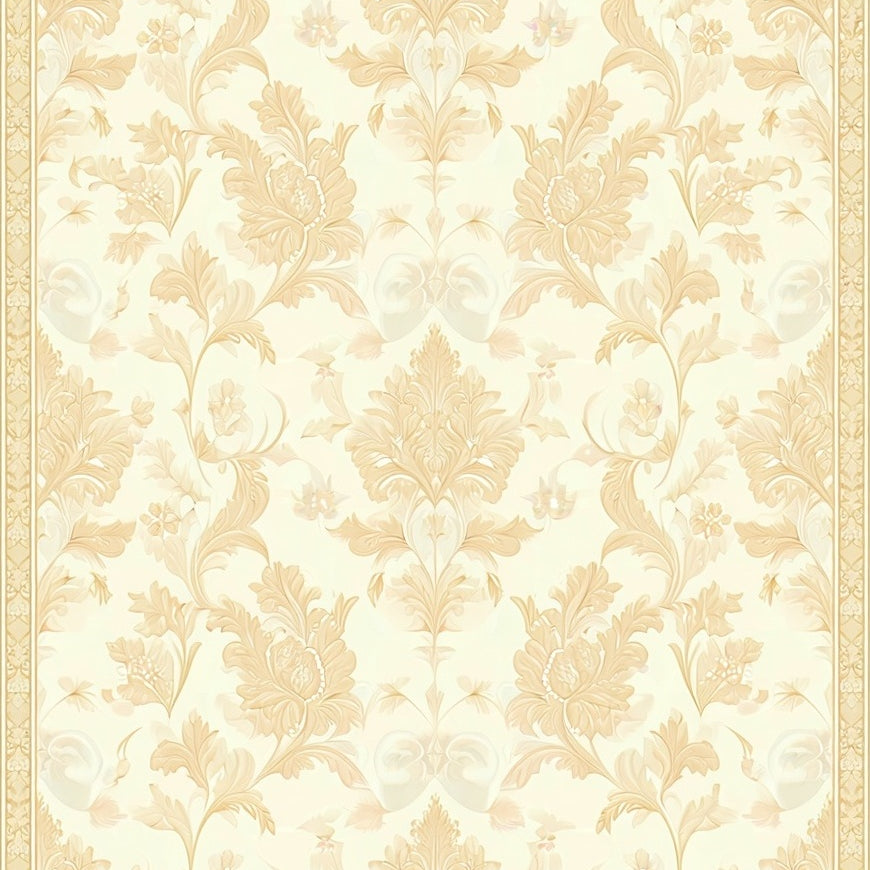 Beige Damask Inspired Area with Fluid Scroll and Hues(Beige)