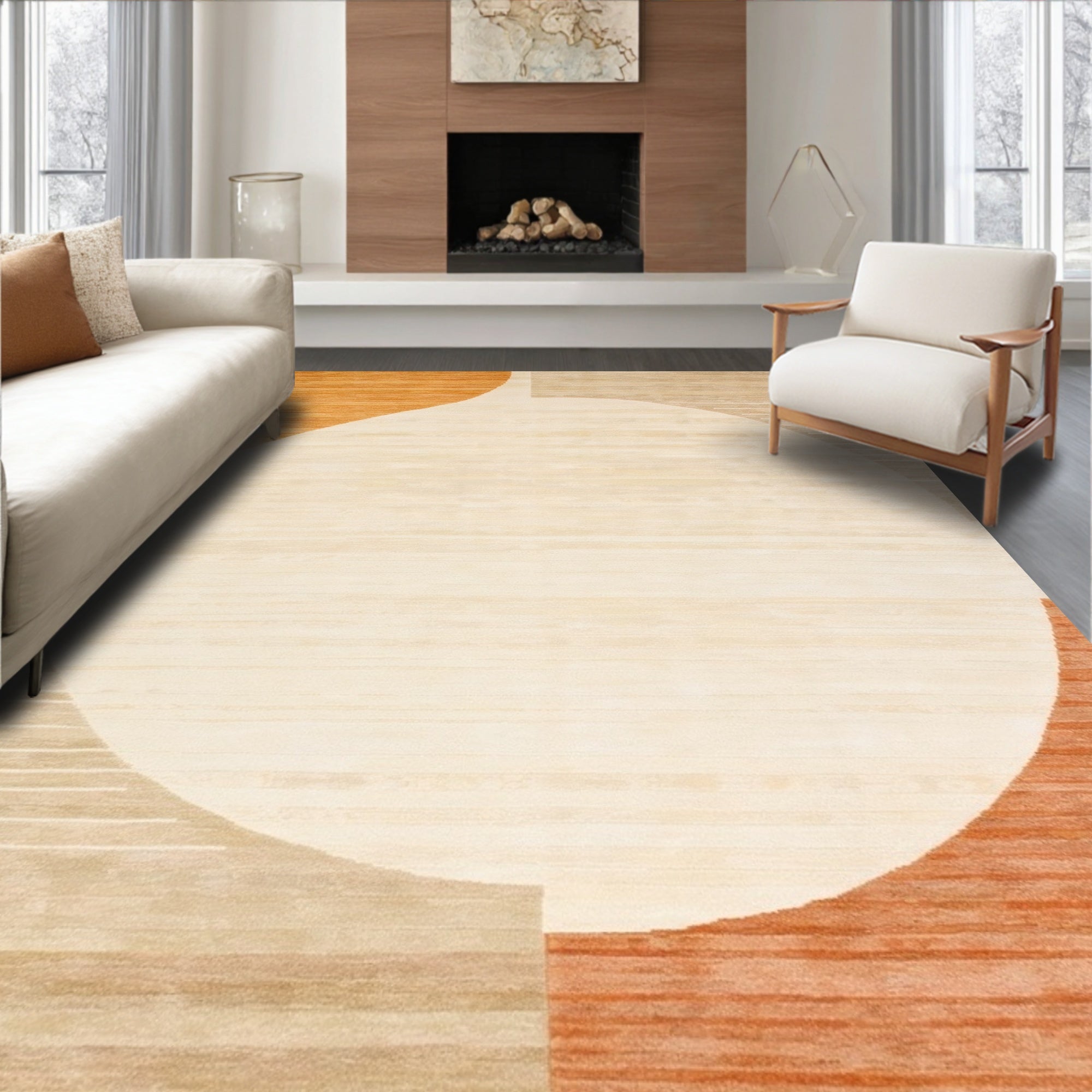 Beige Colorful Abstract Layered Wave Geometric Area(Orange)