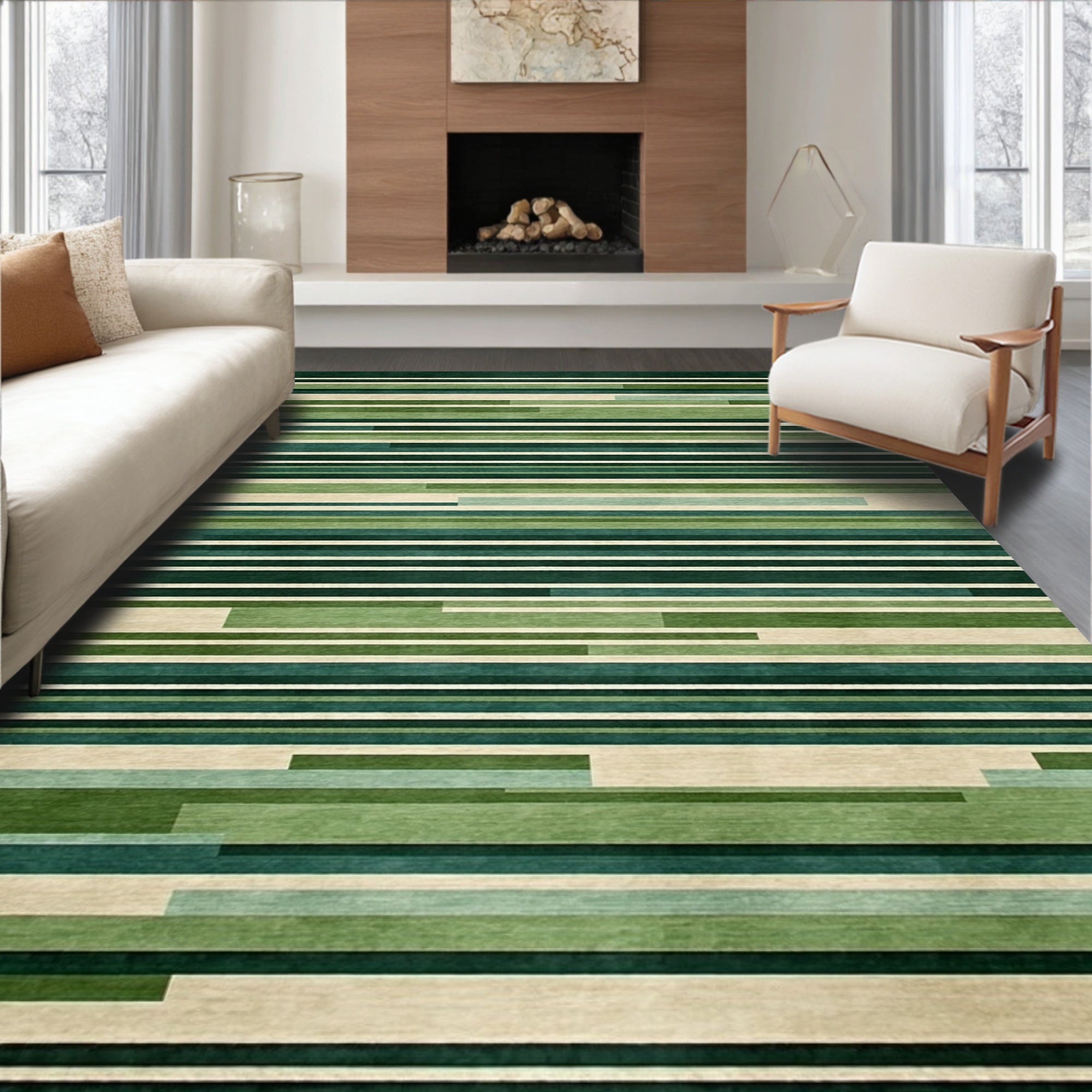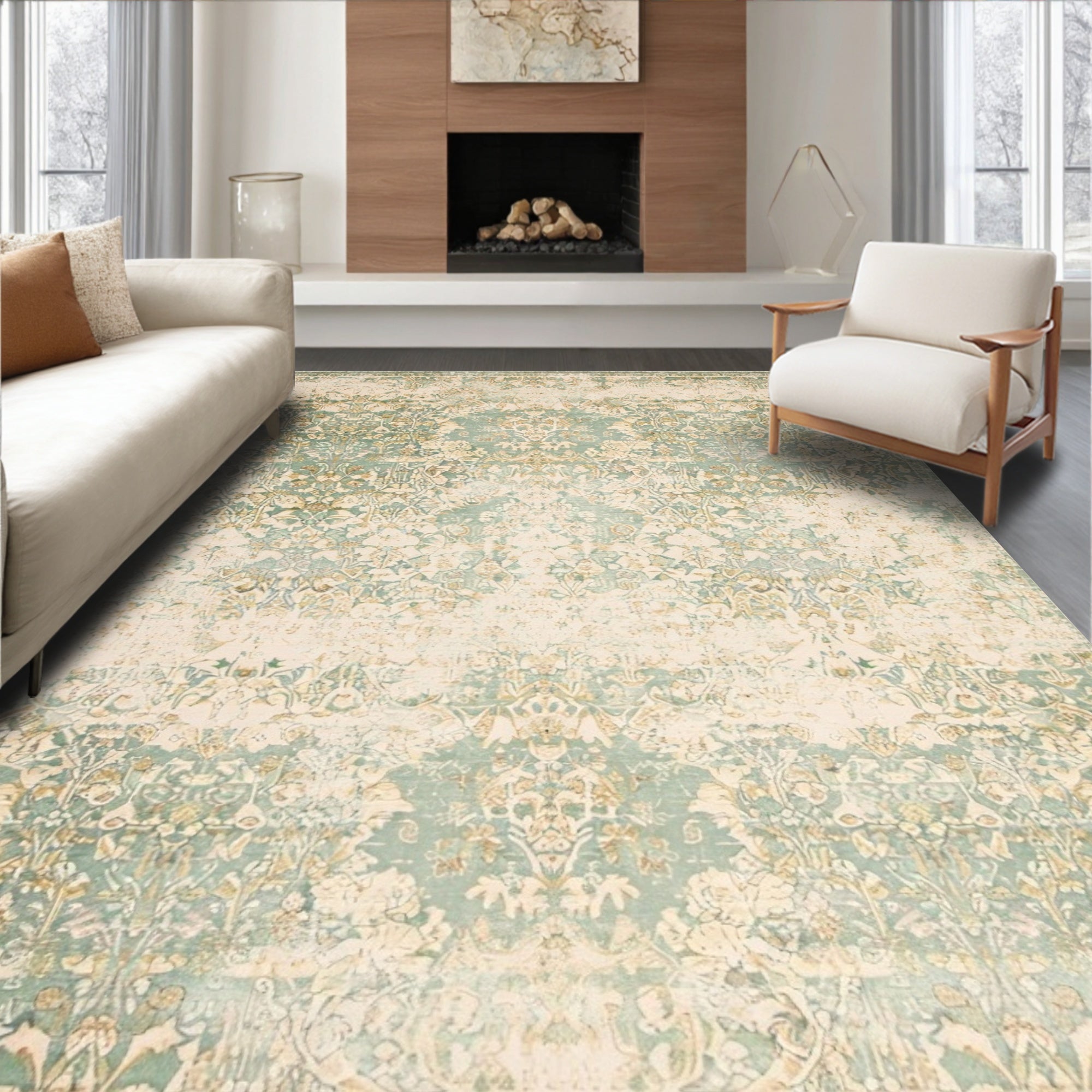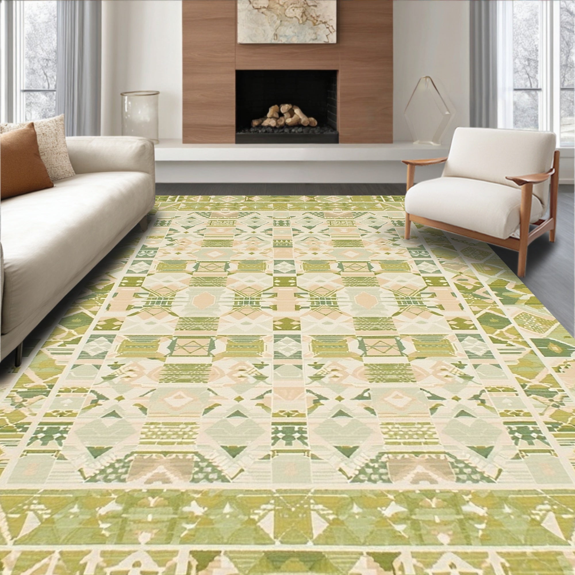 Beige Green Vintage Design Easy Clean Durable Non Shed(Beige)