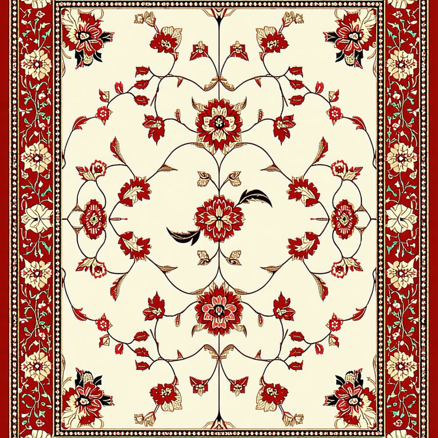 Beige Muslim Prayer Mat with Ornamental Floral Medallion and Classic Symmetry(Beige)