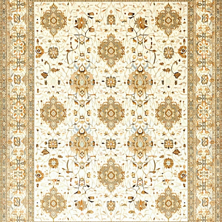 Beige Oval with Subtle Ivory Scrollwork and Floral Details(Beige)