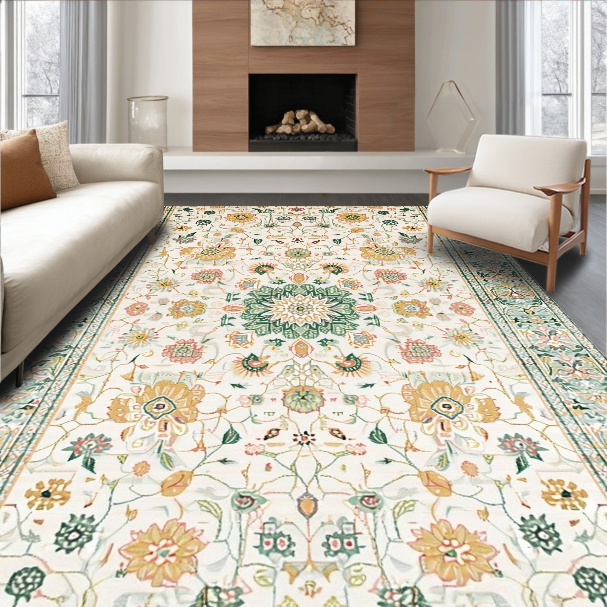 Beige with Classic Medallion and Distressed Finish(Beige)