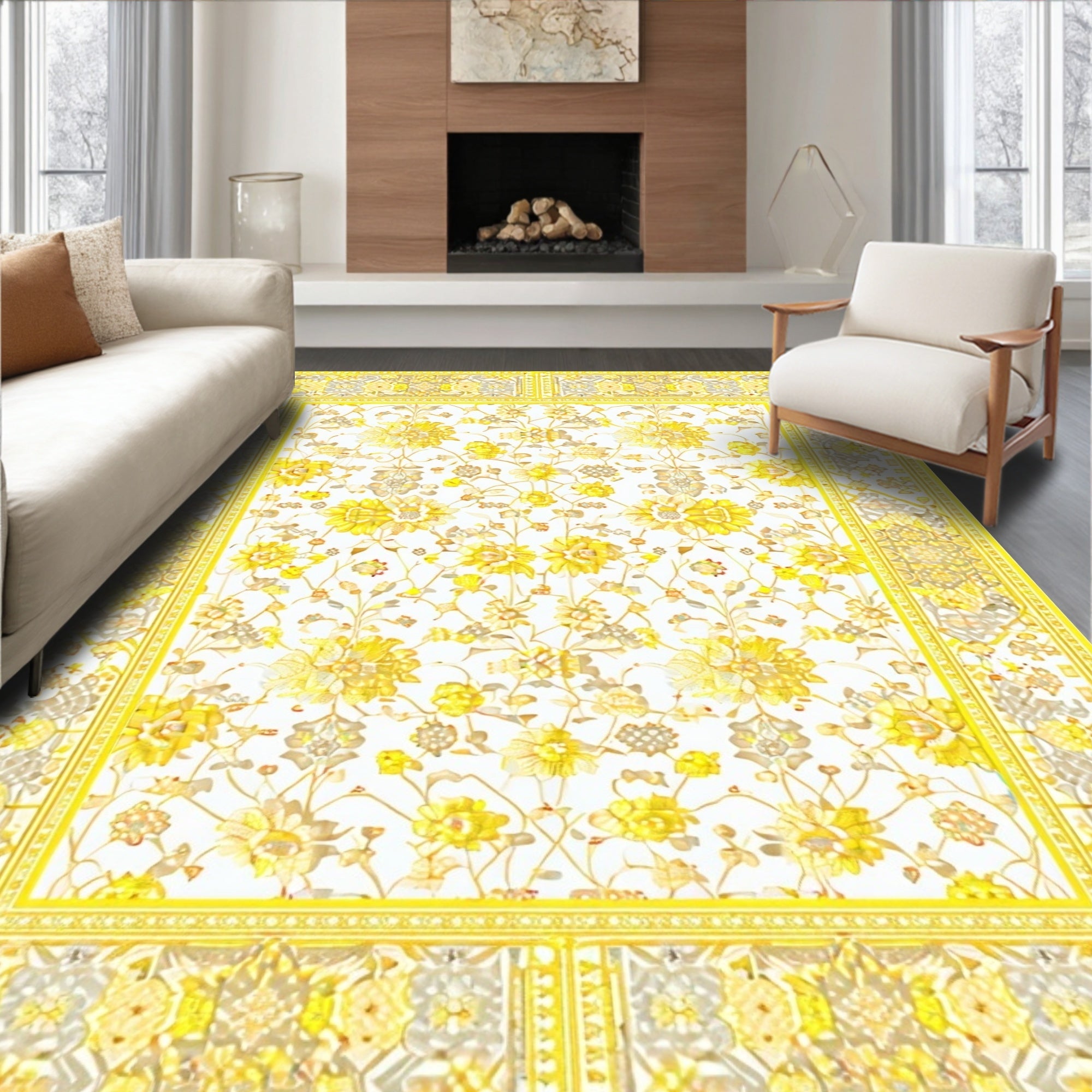 Beige Yellow Tan Abstract Flannel Non Slip Bath Mat(Beige)