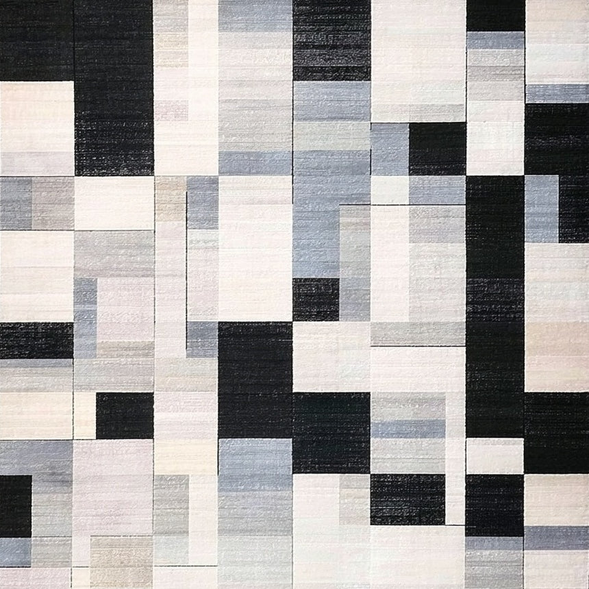 Bold Black & White Blocks Contemporary Patterned Floor Mat(Gray)