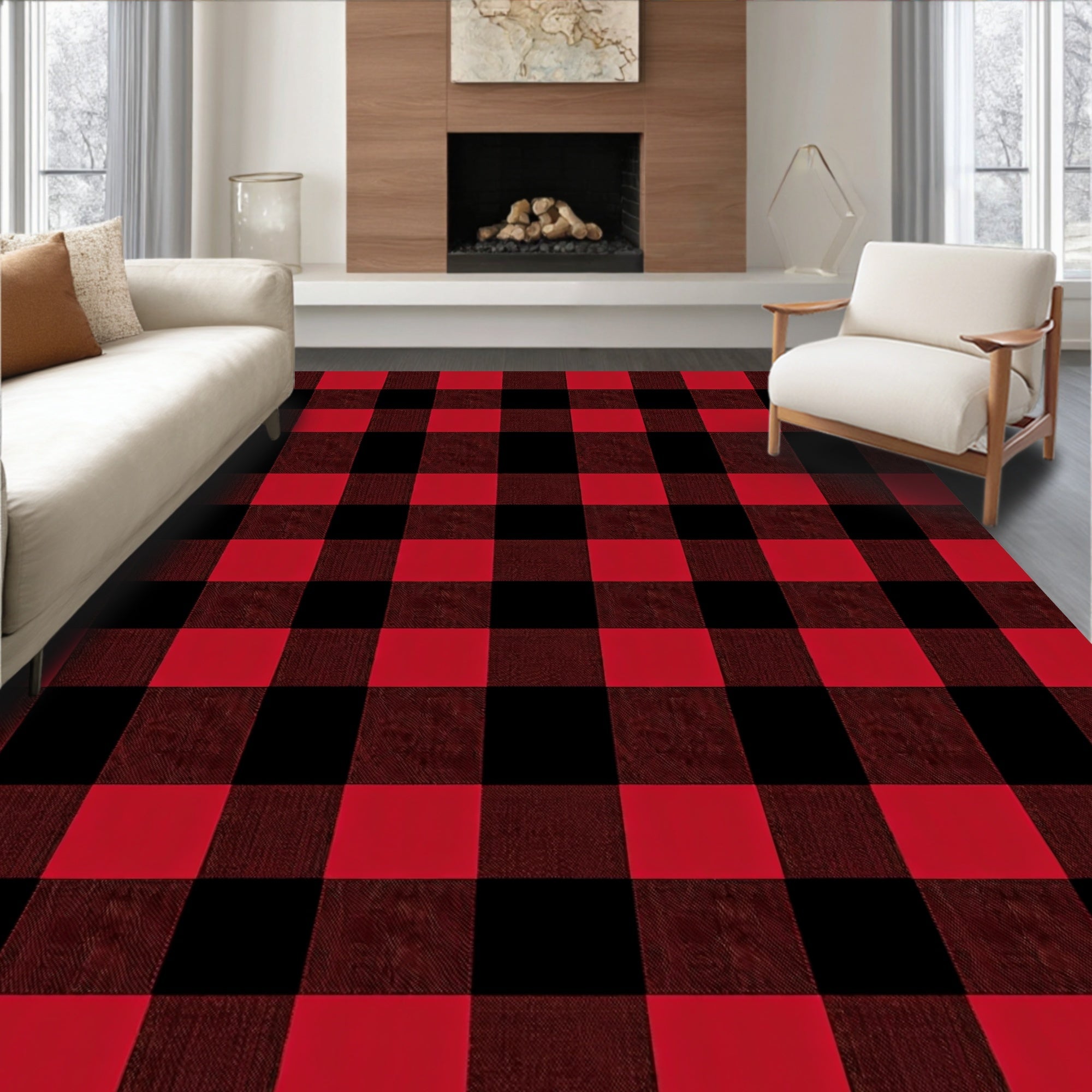 Bold Buffalo Plaid Featuring Alternating Wide and Narrow Bands(Red)