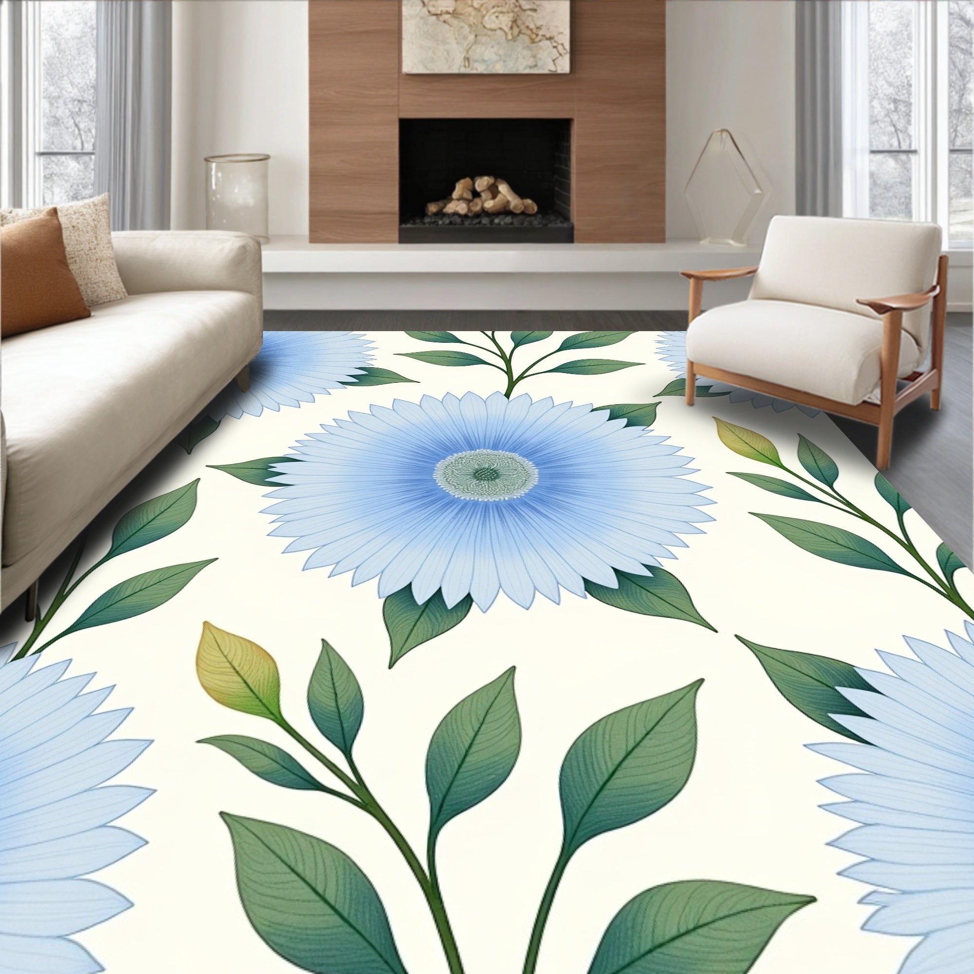 Blooming Helianthus Artistic Floor Covering(Blue)
