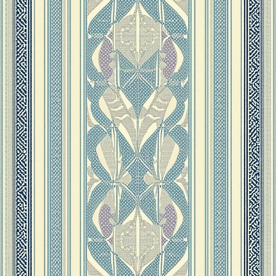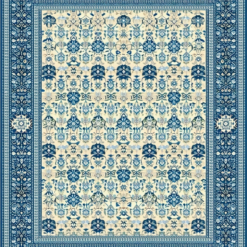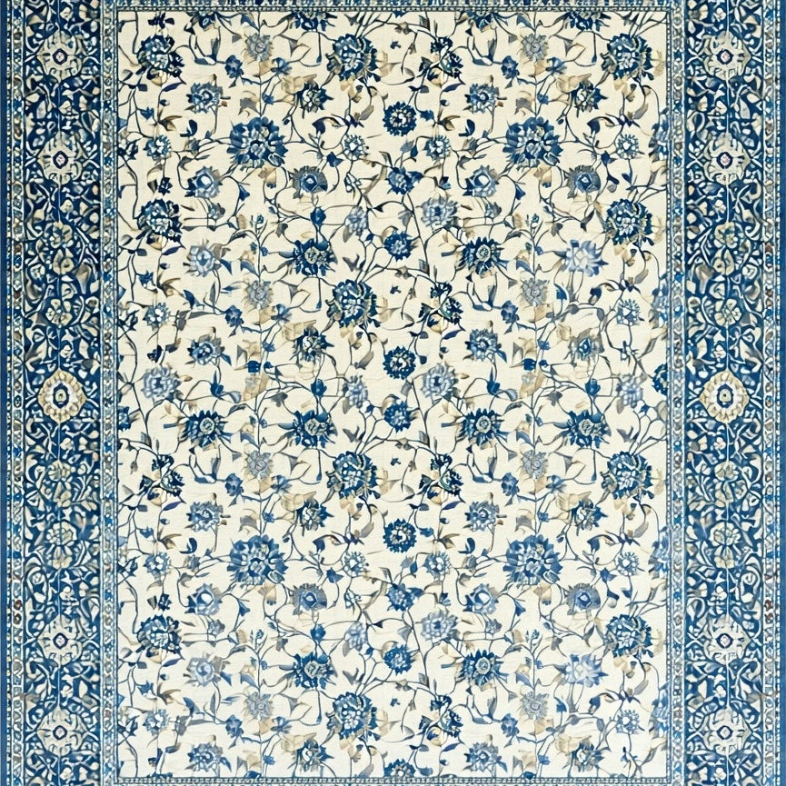 Blue and Beige Vintage Floral Medallion with Delicate Details(Ivory)