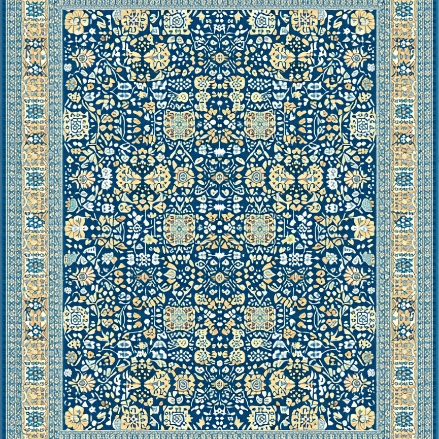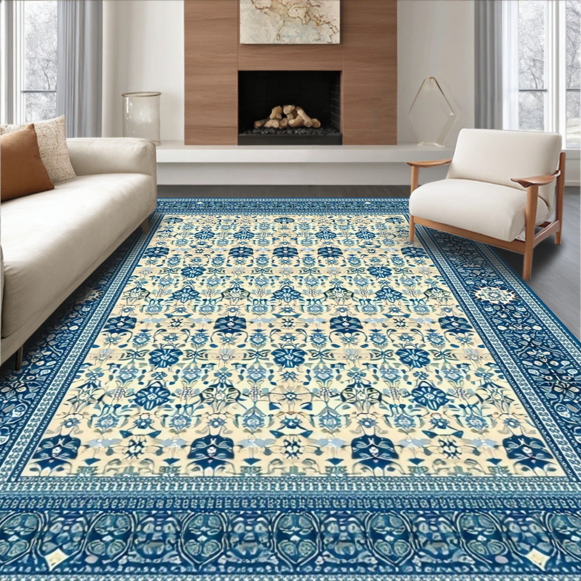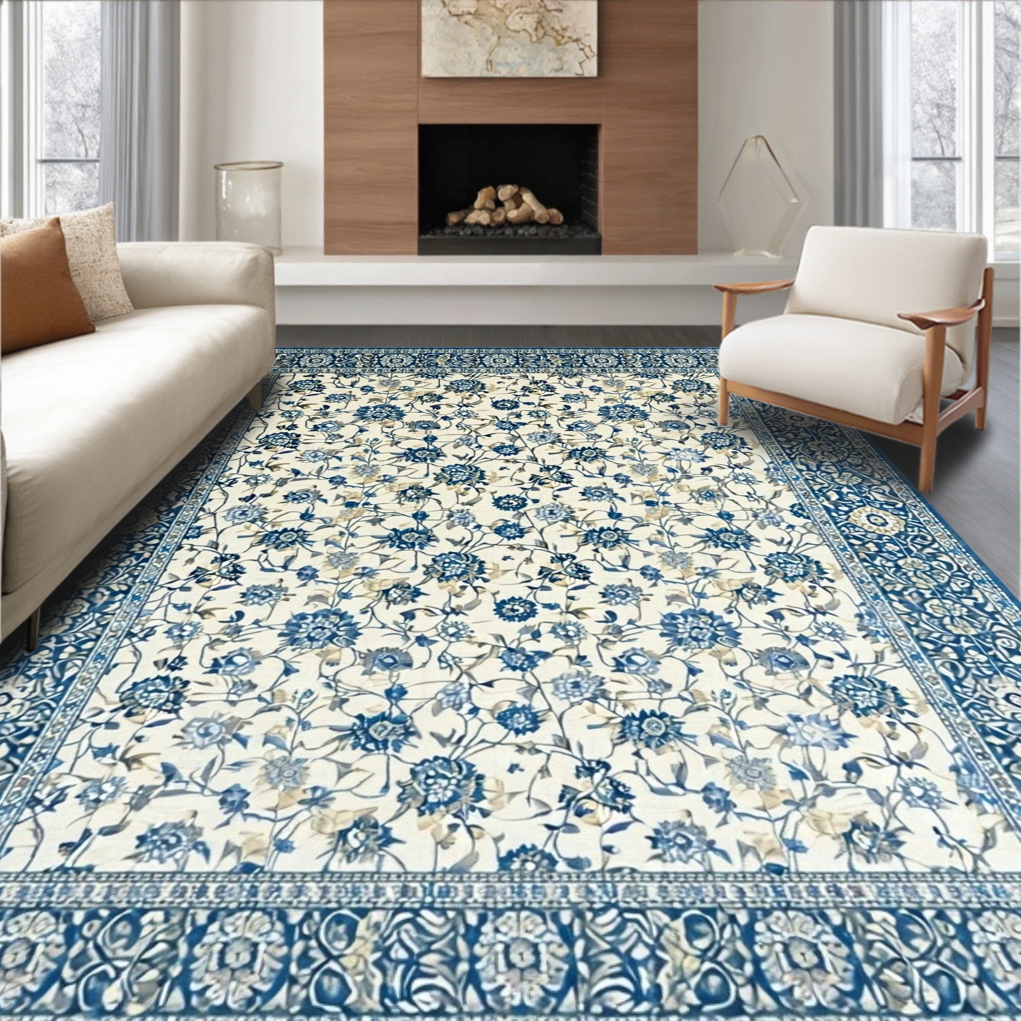 Blue Bloom Floral Beige Tapestry Style Area(Beige)