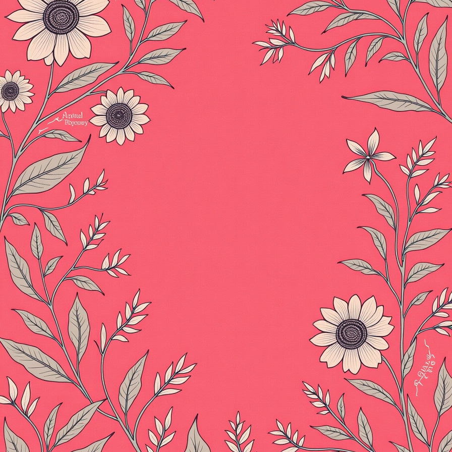 Blush Pink and Mauve Gradient with Abstract Floral Leaf Motifs(Beige)