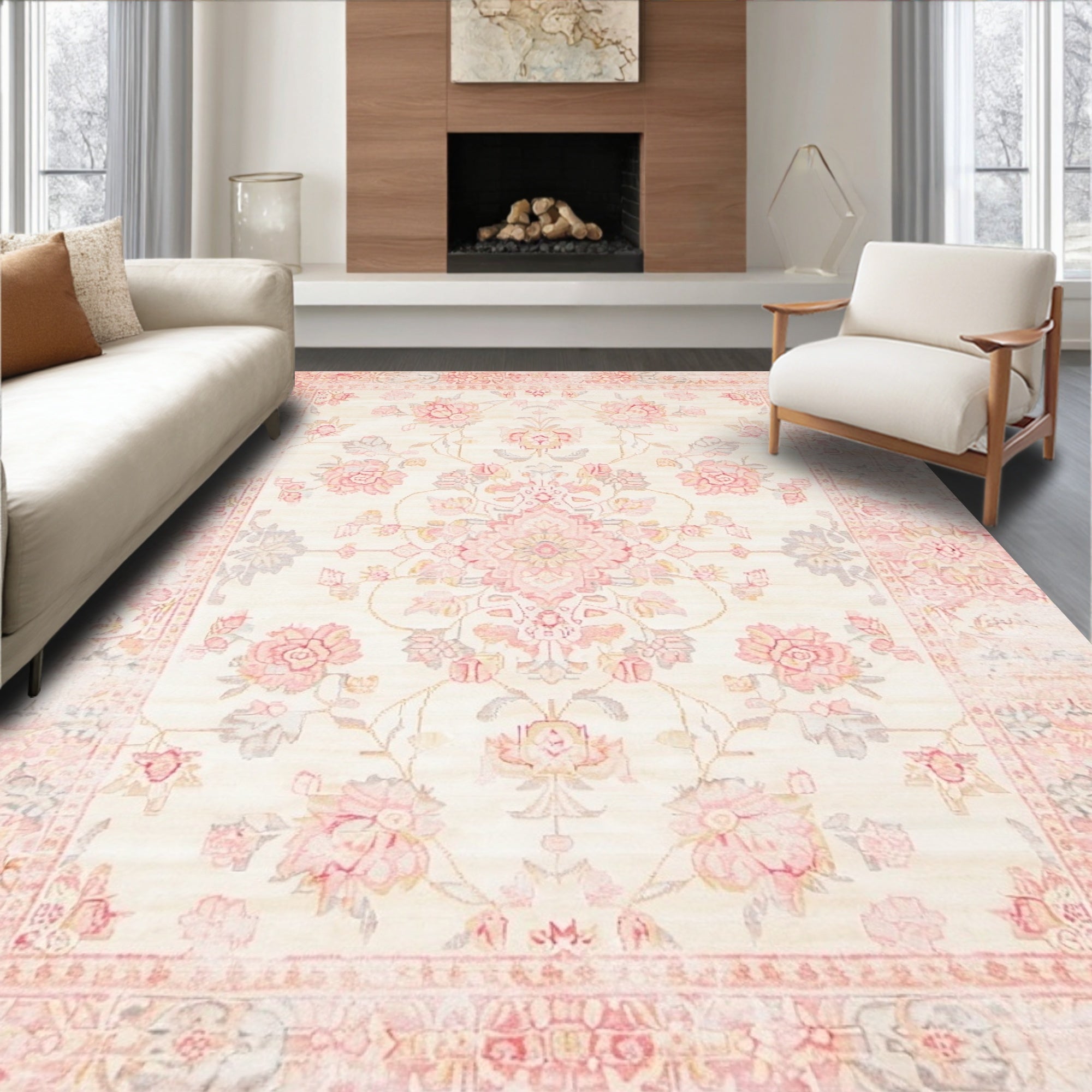 Blush Floral Area Vintage Charm Boho Vibes Pastel Tones(Ivory)