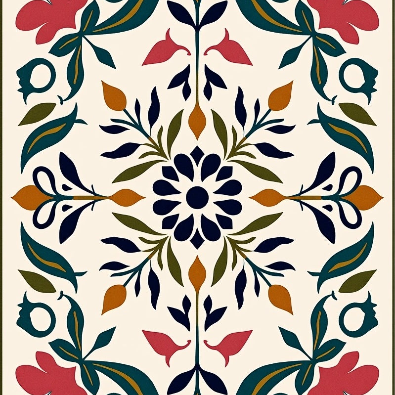 Abstract Floral Medallion Design with Flowing Vines and Leaf Accents(Ivory)