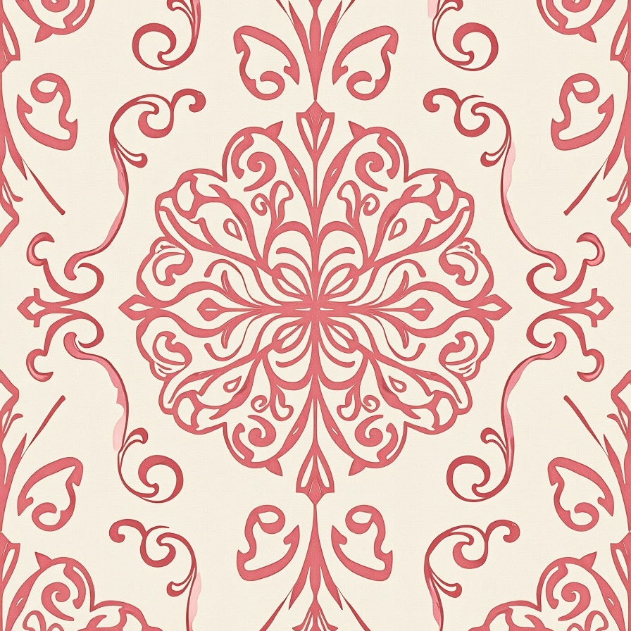 Abstract Ornamental Motif with Swirling Filigree and Gentle Weathered Effects(Pink)
