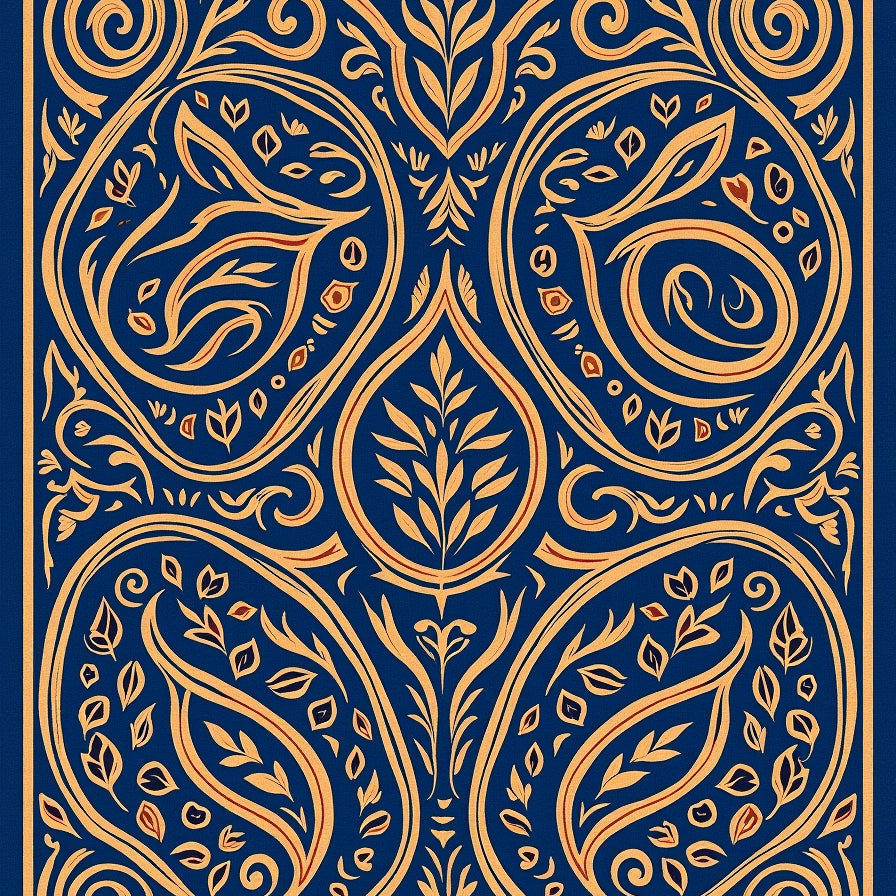 Abstract Paisley Swirl Collection with Teardrop Motif Arrangement(Blue)