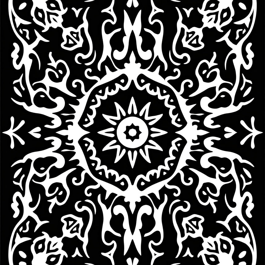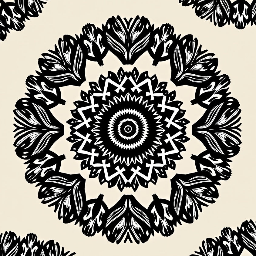 Abstract Floral Burst with Stylized Petals and Radiating Symmetry(Black)