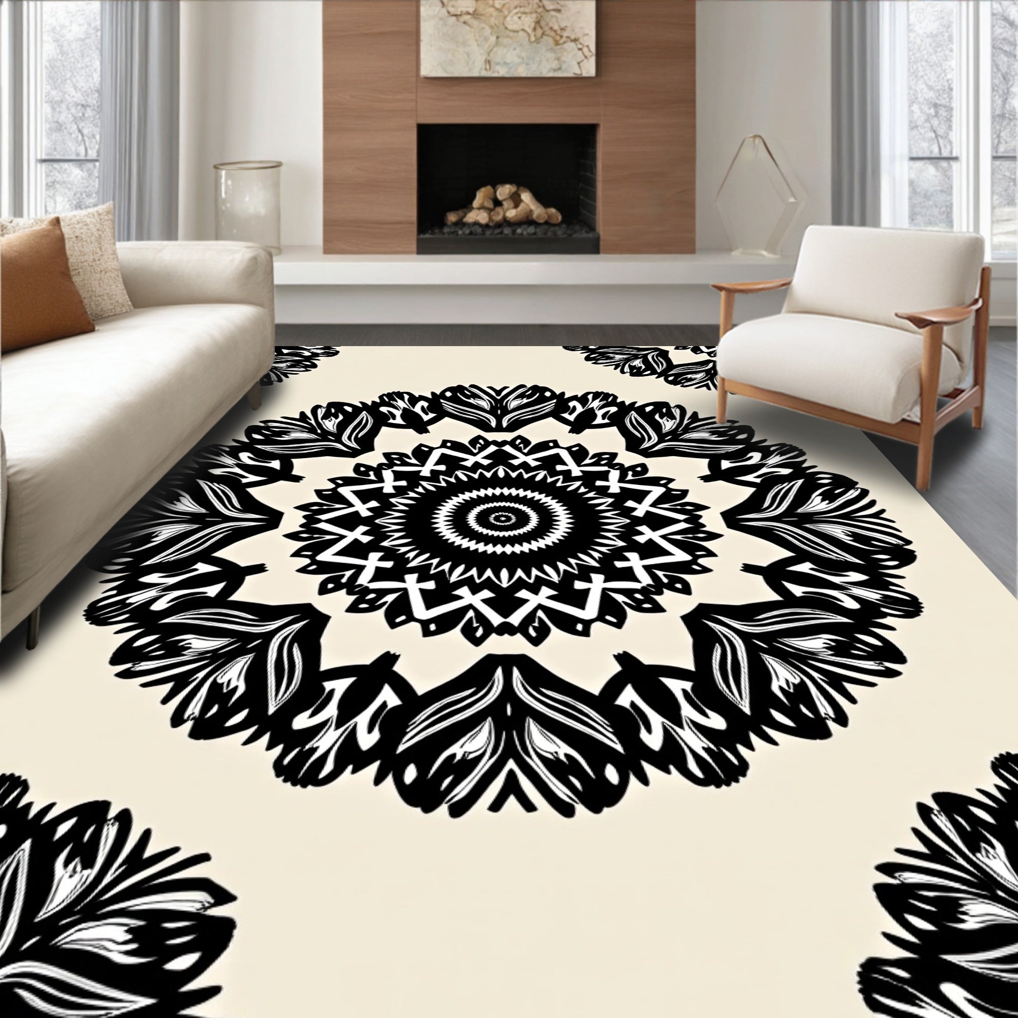 Abstract Floral Medallion Floor Covering(Beige)