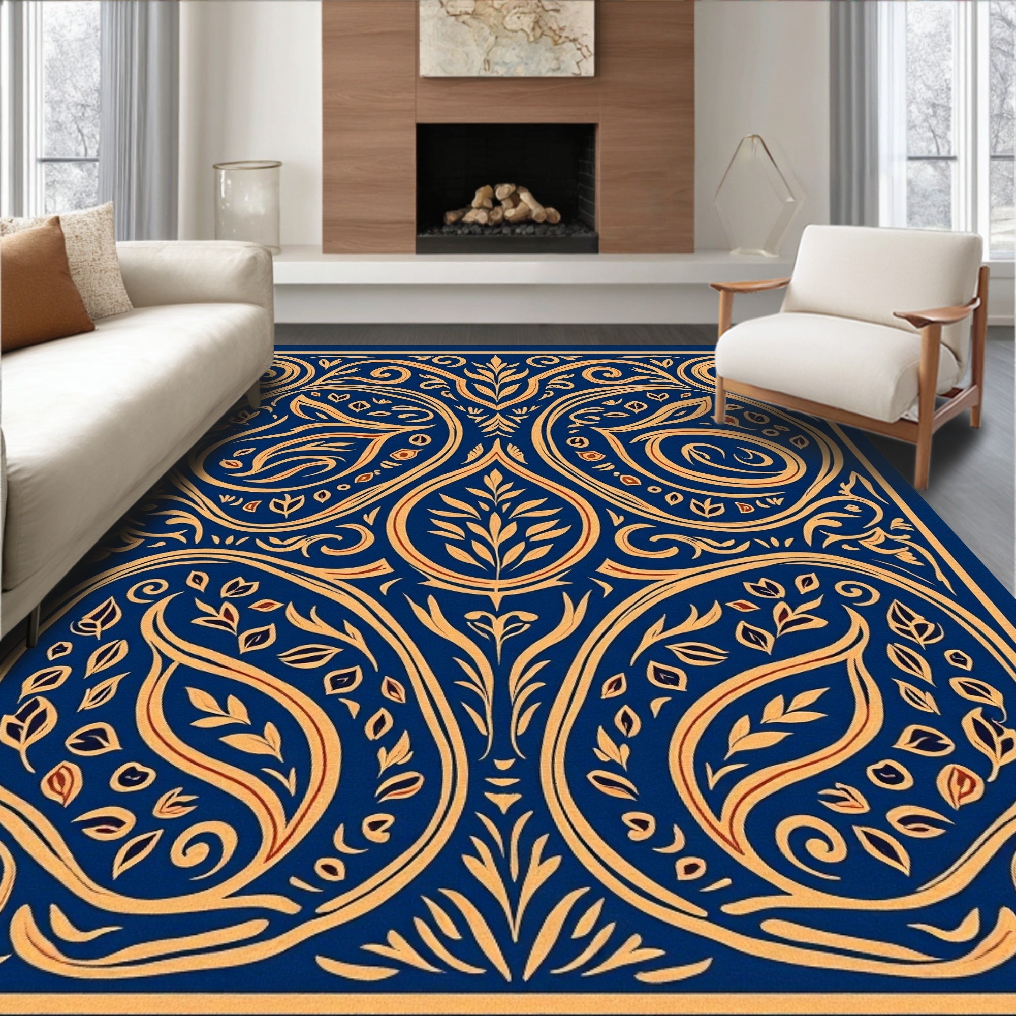 Abstract Ombre Wave Area Rug Multicolour Gradient Washable Carpet(Blue)