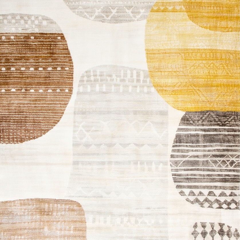 Boho Chic Beige Area with Multi Colored Geometric(Beige)