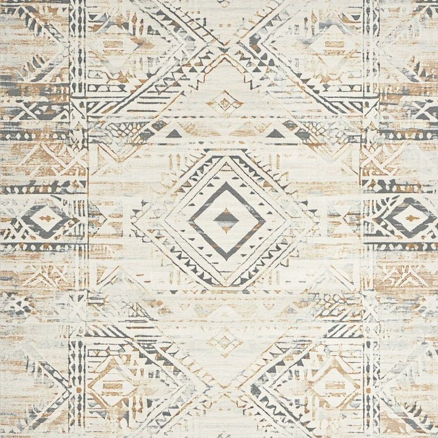 Boho Chic Area with Geometric Beige Lattice and Grey Medallions(Beige)