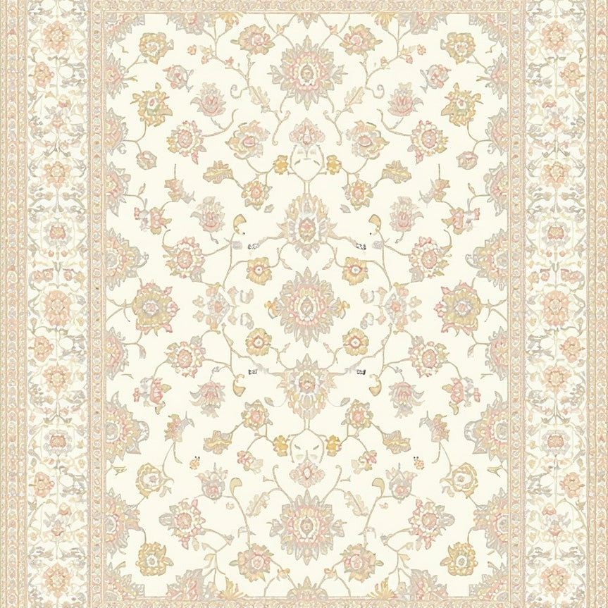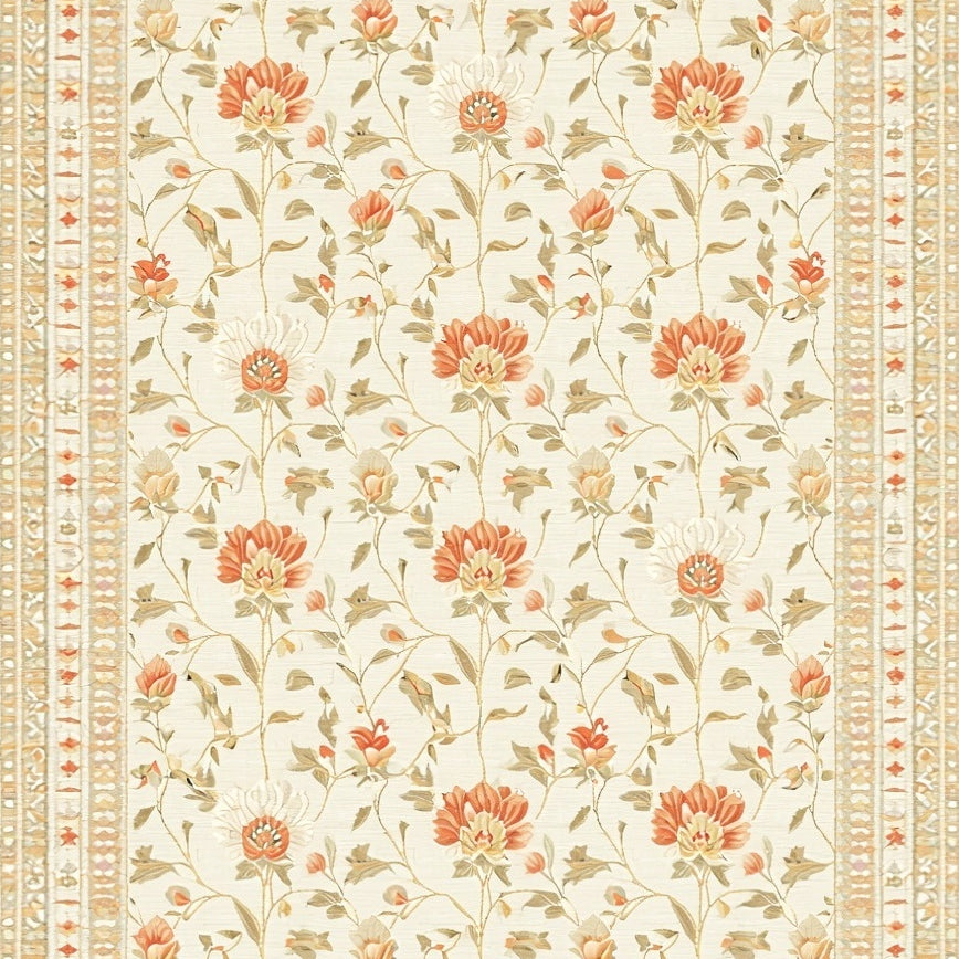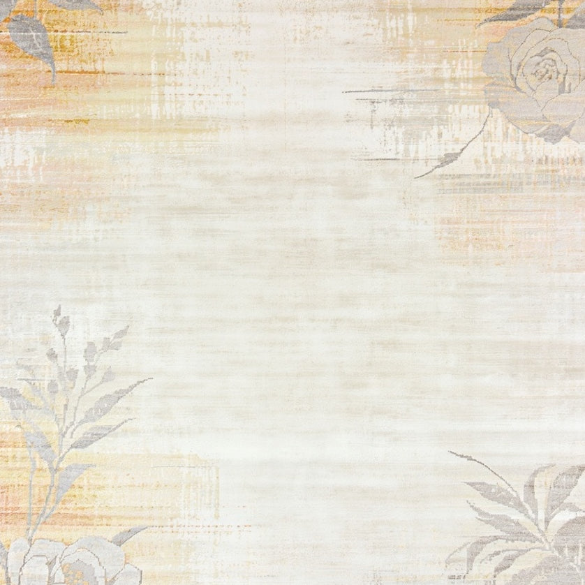 Boho Chic Area Showcasing Blooms and Artistic Beige Filigree(Beige)
