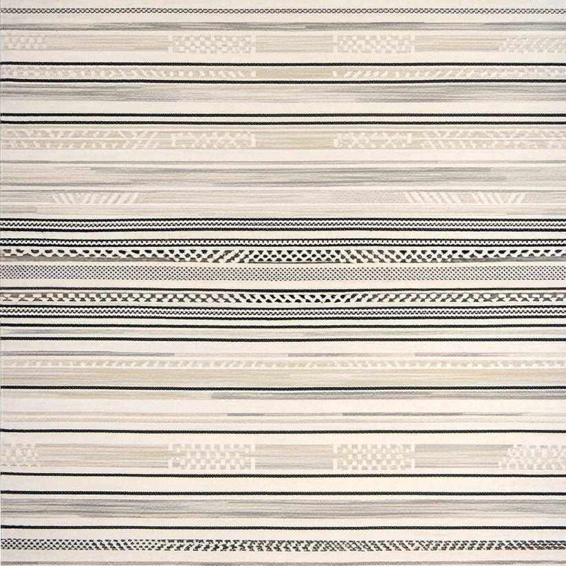 Boho Chic Area with Tribal Inspired Stripes and Muted Sand Accents(Gray)
