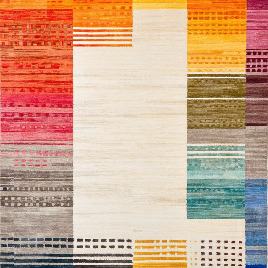 Boho Chic Area with Colorful Rainbow Geometric Shapes for Versatile Style(Orange)