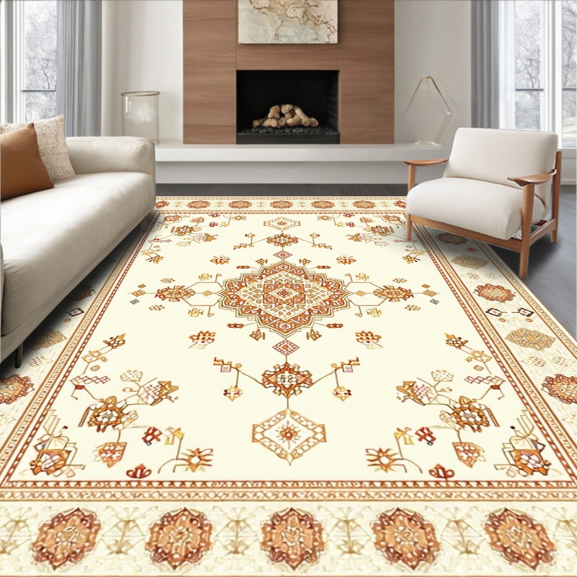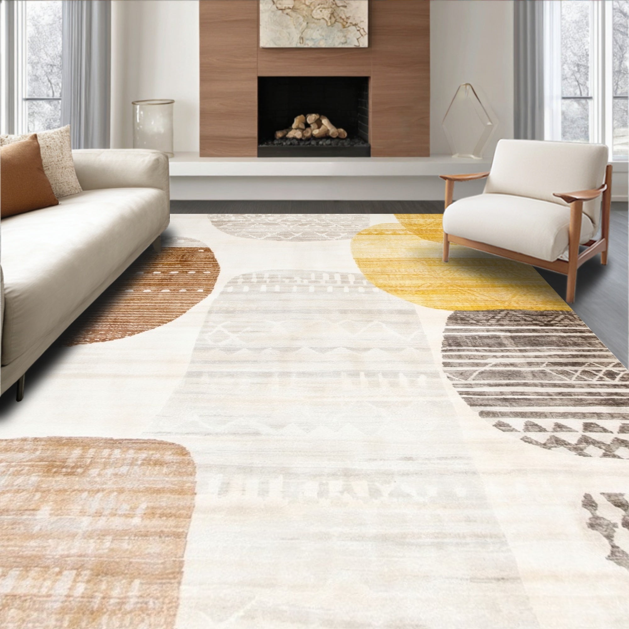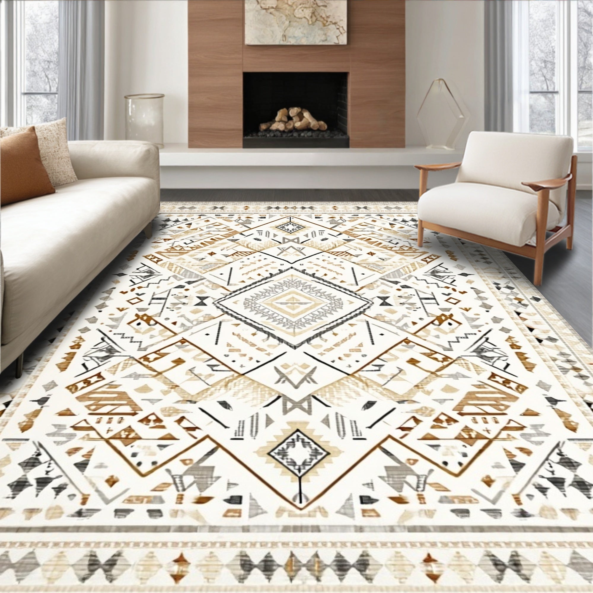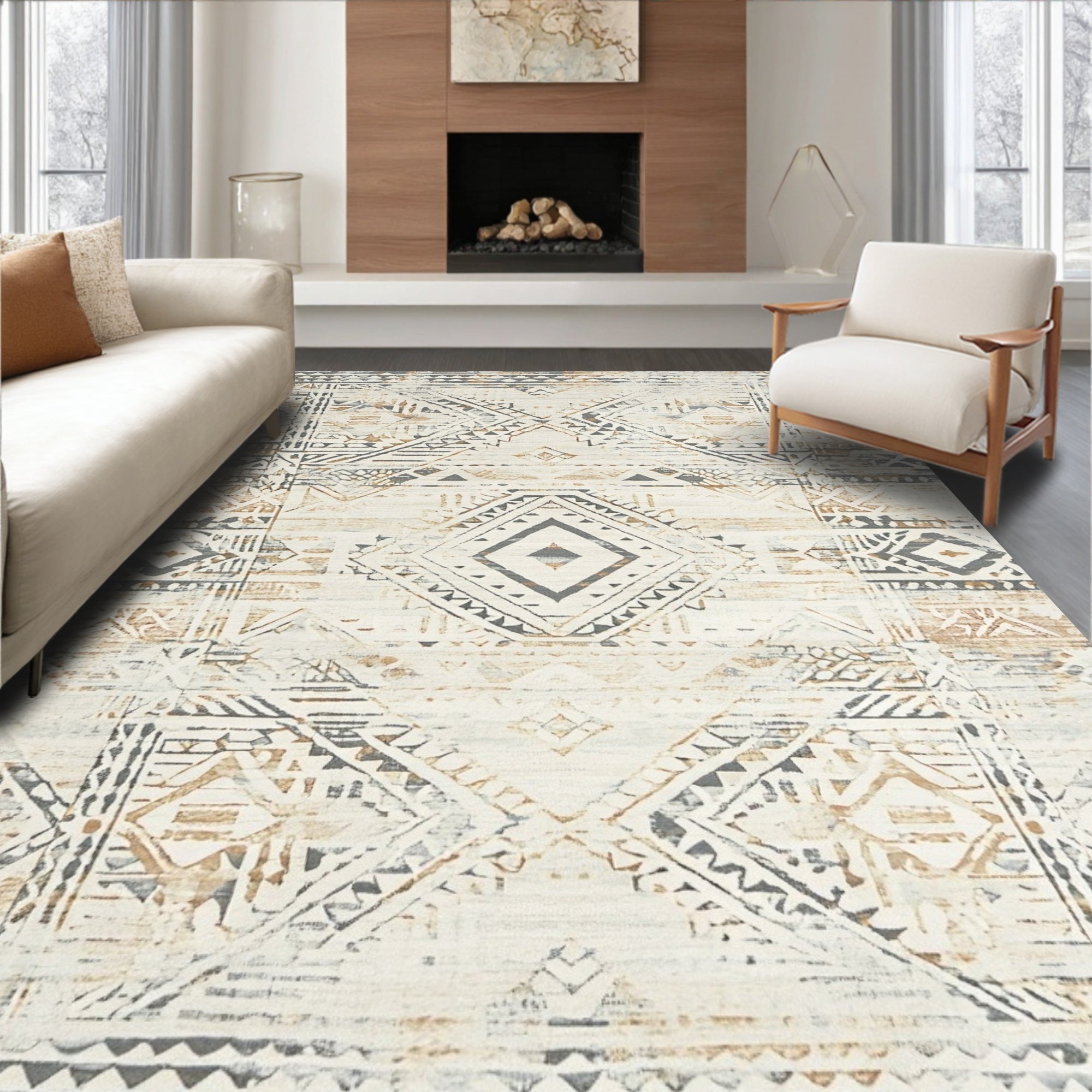Boho Chic Area Rug Earthy Tone Carpet(Beige)