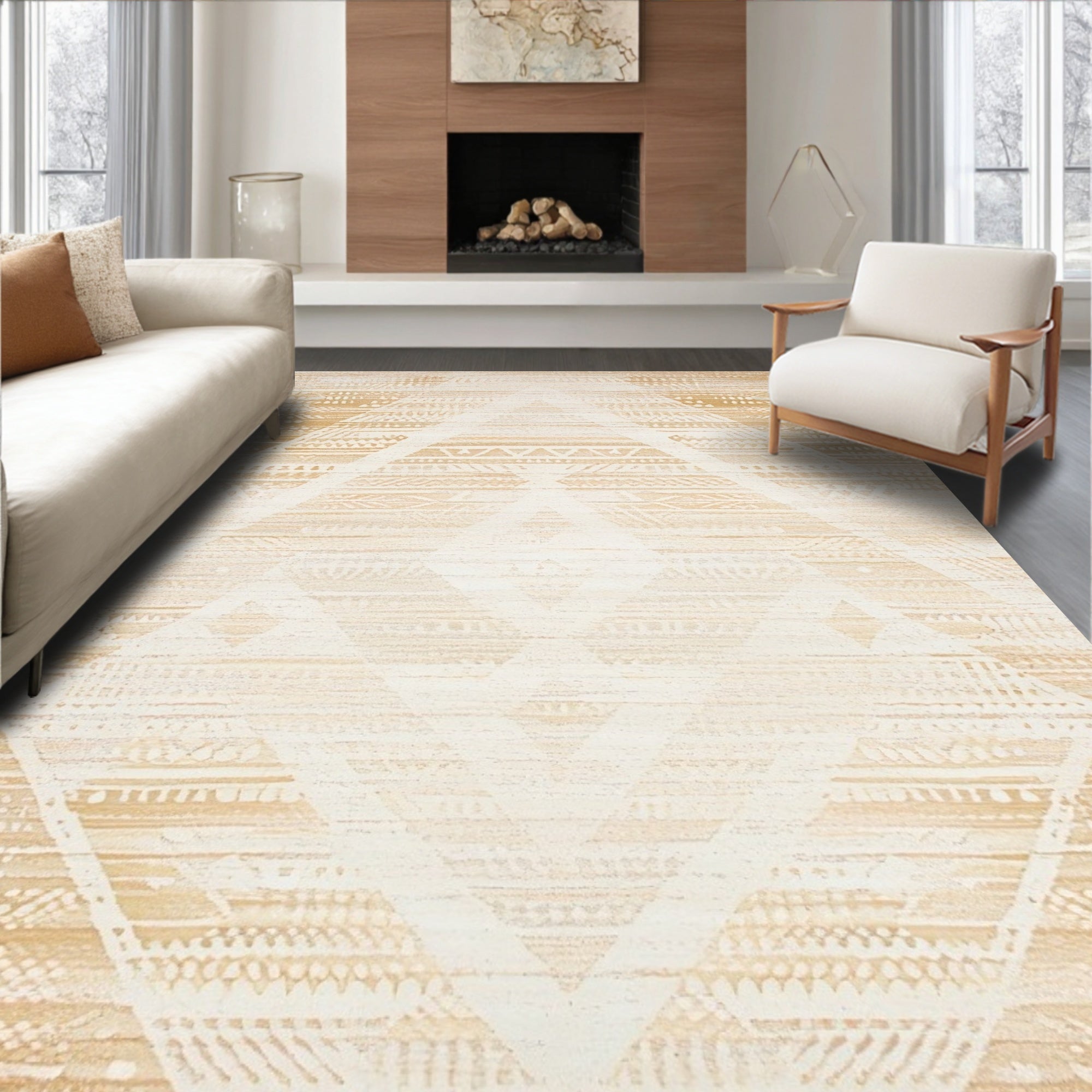 Boho Chic Beige Area Ultra Geometric Modern(Beige)