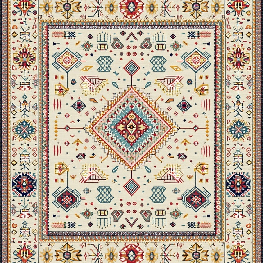 Boho Chic Geometric Area High Low Pile Style(Ivory)